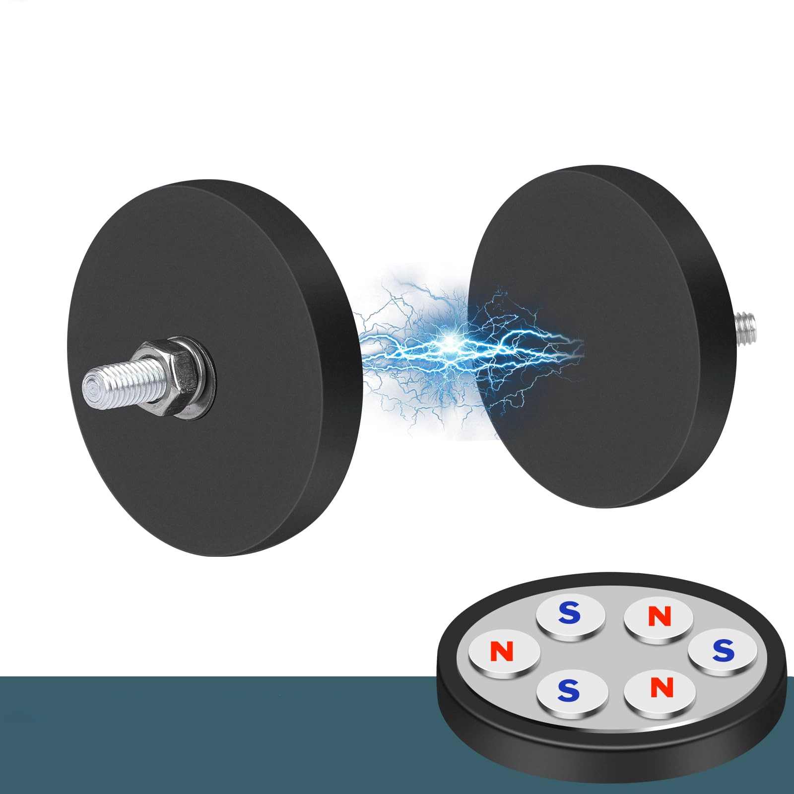 DIYMAG rubber-coated neodymium magnets provide 30lbs holding power without scratches. Each base includes M5 threaded studs and nuts, perfect for mounting light bars, cameras, or PTZ equipment.
