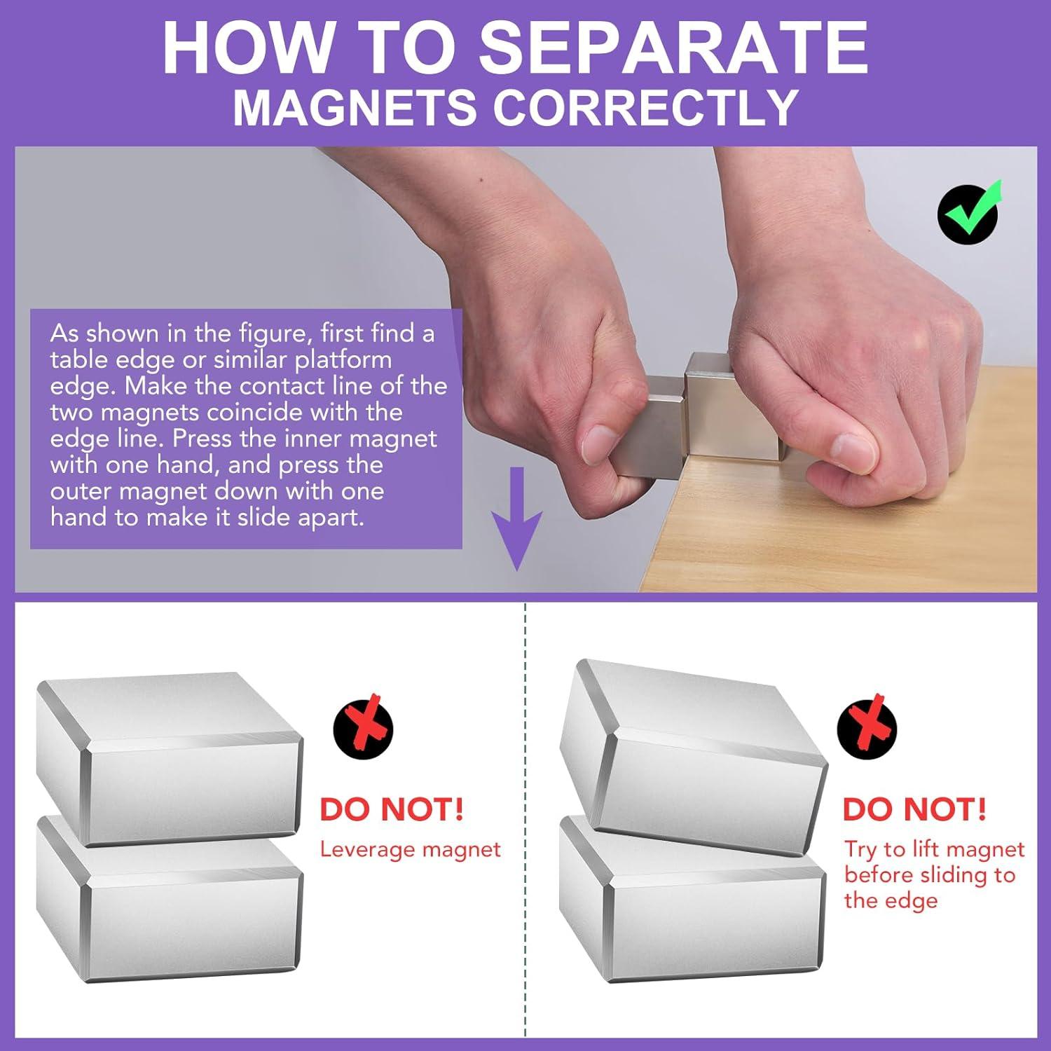 Neodymium magnets are brittle; they can be broken or can splinter in a collision. One should wear gloves and protective glasses when handling these magnets, because splinters could disengage and fly from the magnets.You should avoid having constant contact with magnets of any size and keep a distance of at least 3 feet to large magnets.