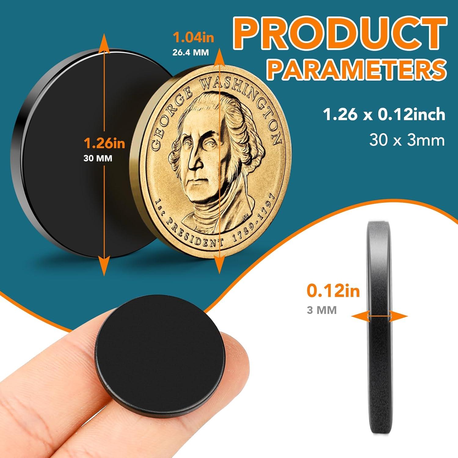 Appropriate Size: These neodymium disc magnets have a diameter of 1.26 inches and a thickness of 0.12 inches( tolerance of ± 0.2mm x ± 0.2mm). The appropriate size can be used in various places in daily life, with small limitations, compact structure, and easy portability.