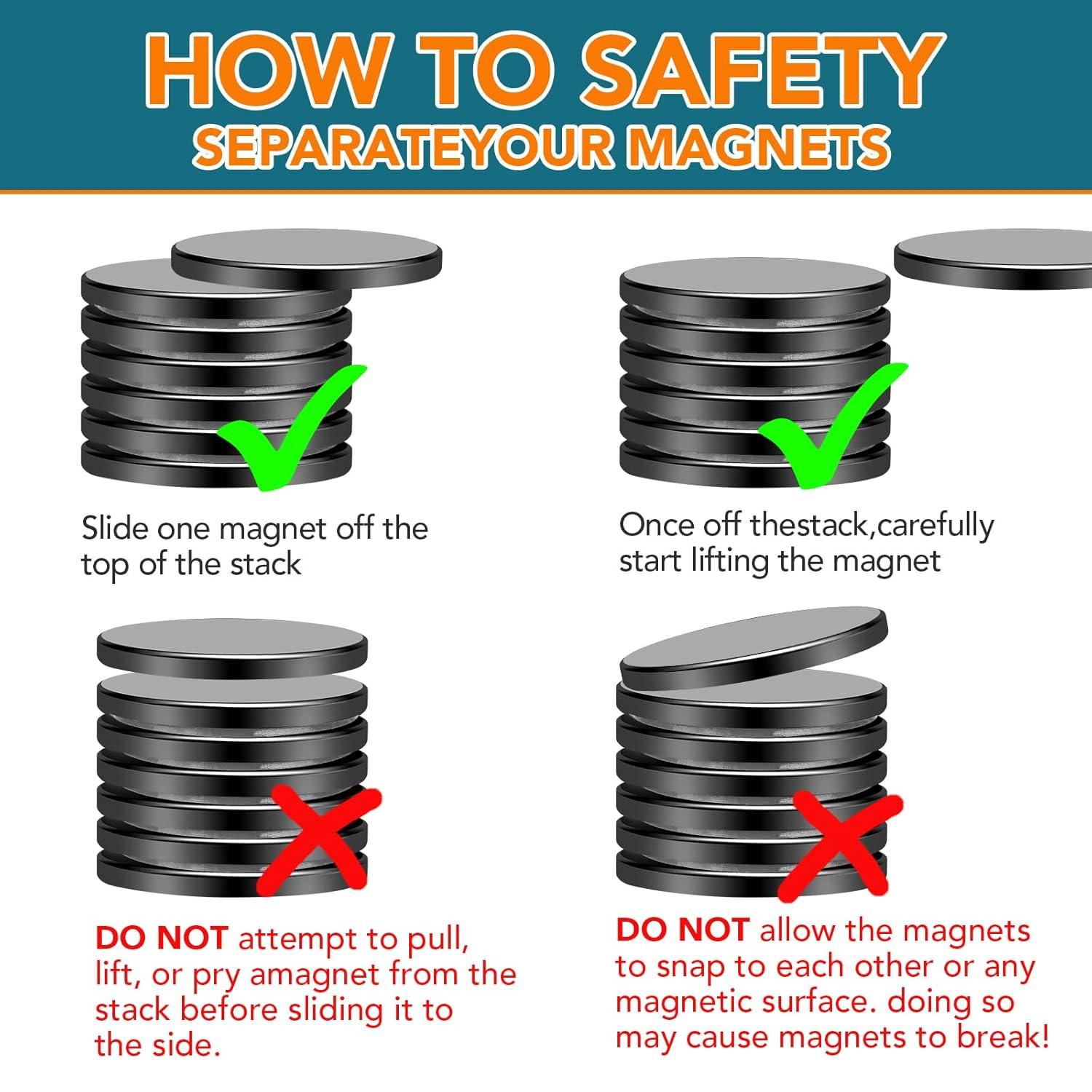 Multipurpose: These large circular magnets have a wide range of applications, serving as sturdy refrigerator magnets to secure items, suitable for handicraft projects, DIY projects, as well as hanging spice jars, pictures, whiteboards, and more. They are also applicable to science classrooms in schools.