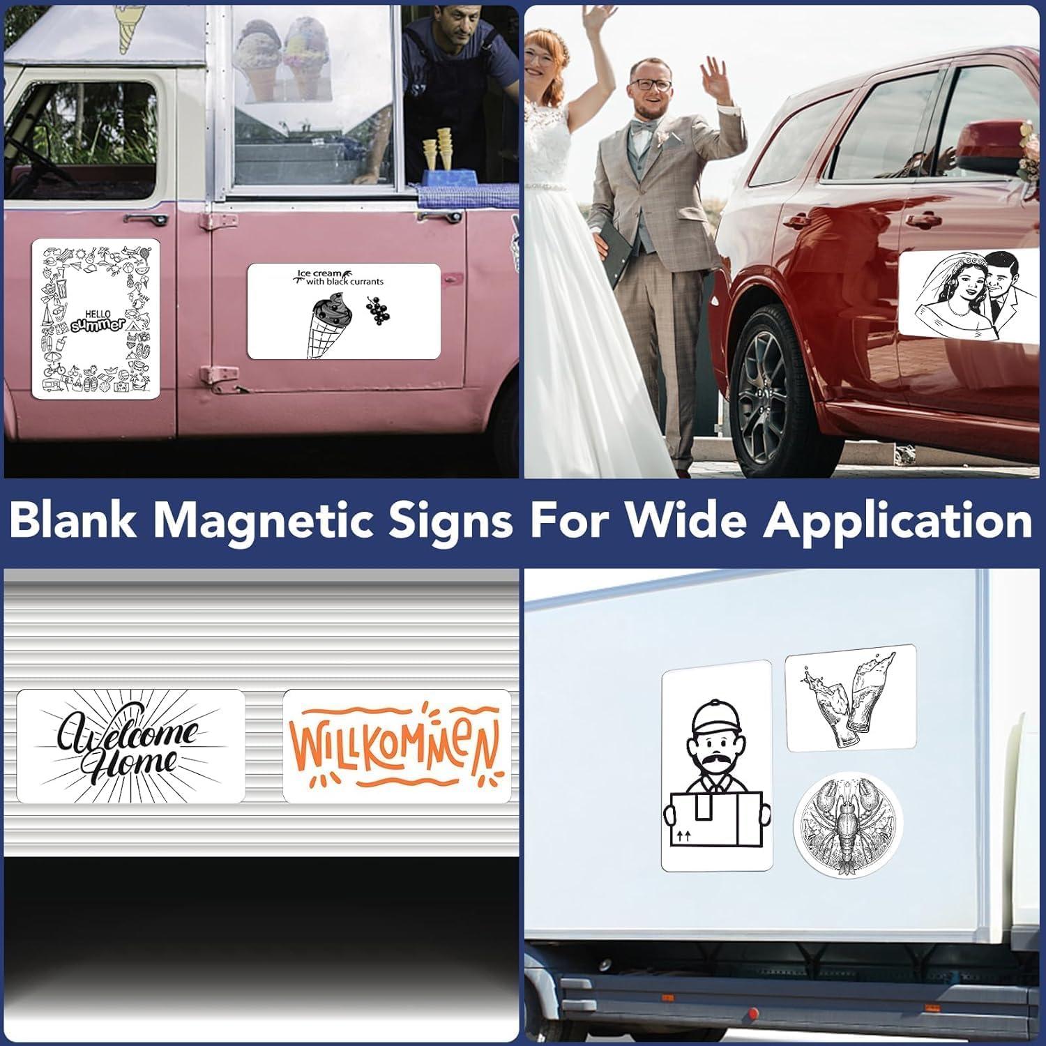 【Car Magnet Set】Set of 2 magnetic signs for vehicles measuring 24 x 17 inches, 30 mil thick, blank car magnets with reinforced magnets that fit securely on the car, even at high speeds. No need to worry about being blown away on the highway
