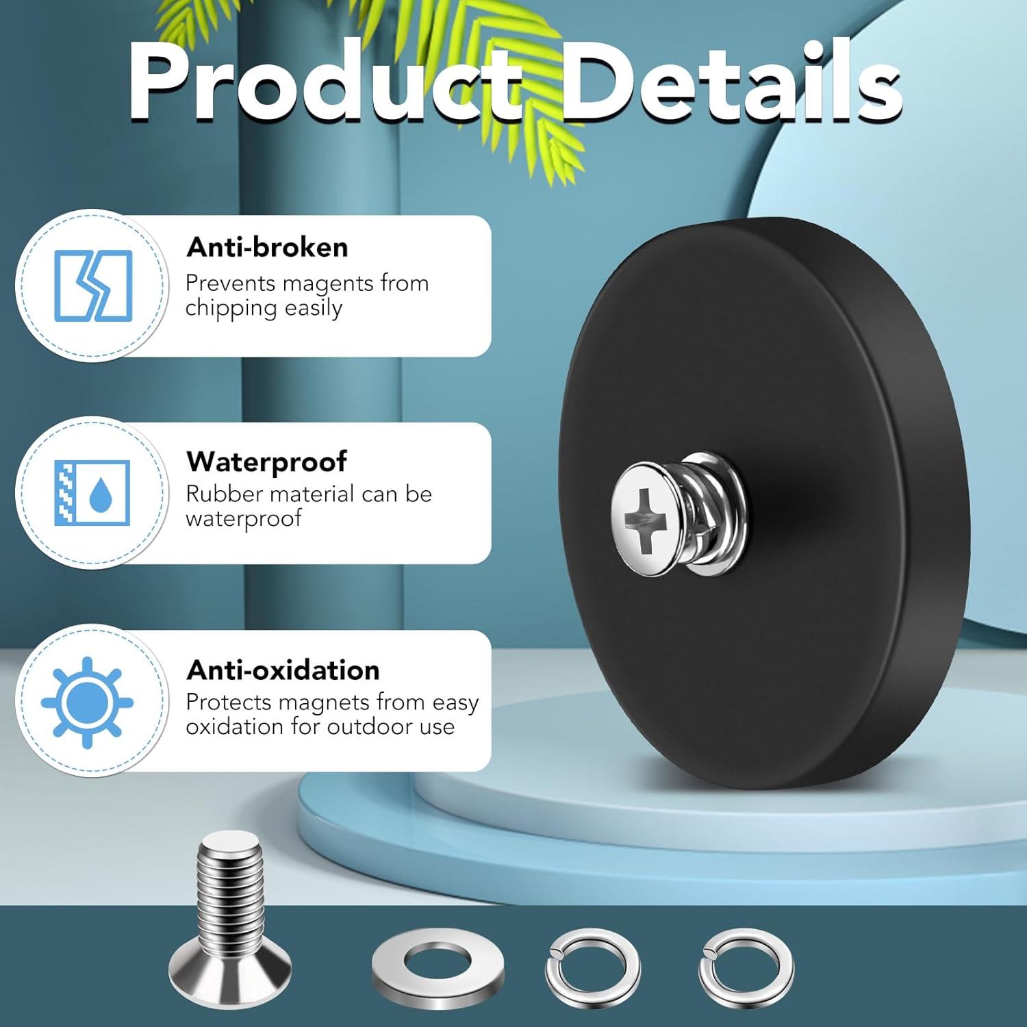 【Convenient for Outdoor Use】Our vertical neodymium disc magnets have 3 layers of corrosion resistant coating on their surface, which can protect the accessory, and the outer rubber coating is also waterproof, so they can be applied outdoors for a long time with confidence