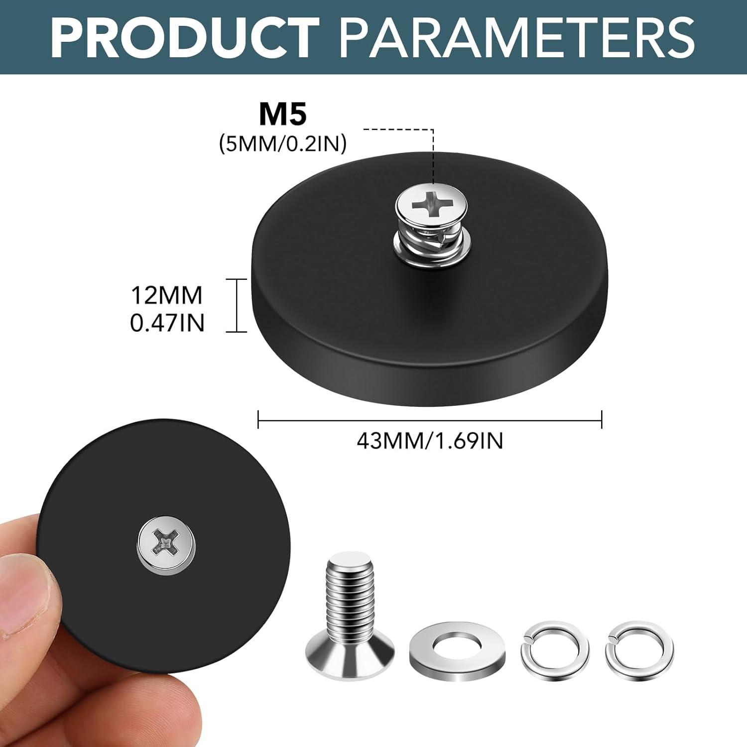 【Multifunctional Use】 Magnet with M5 hexagonal screws can be directly screwed into the threaded hole of the fixing body or threaded through the hole and secured with a washer to connect any hardware component. Great for cameras, light strips, display panels, automation equipment, tools, and machines