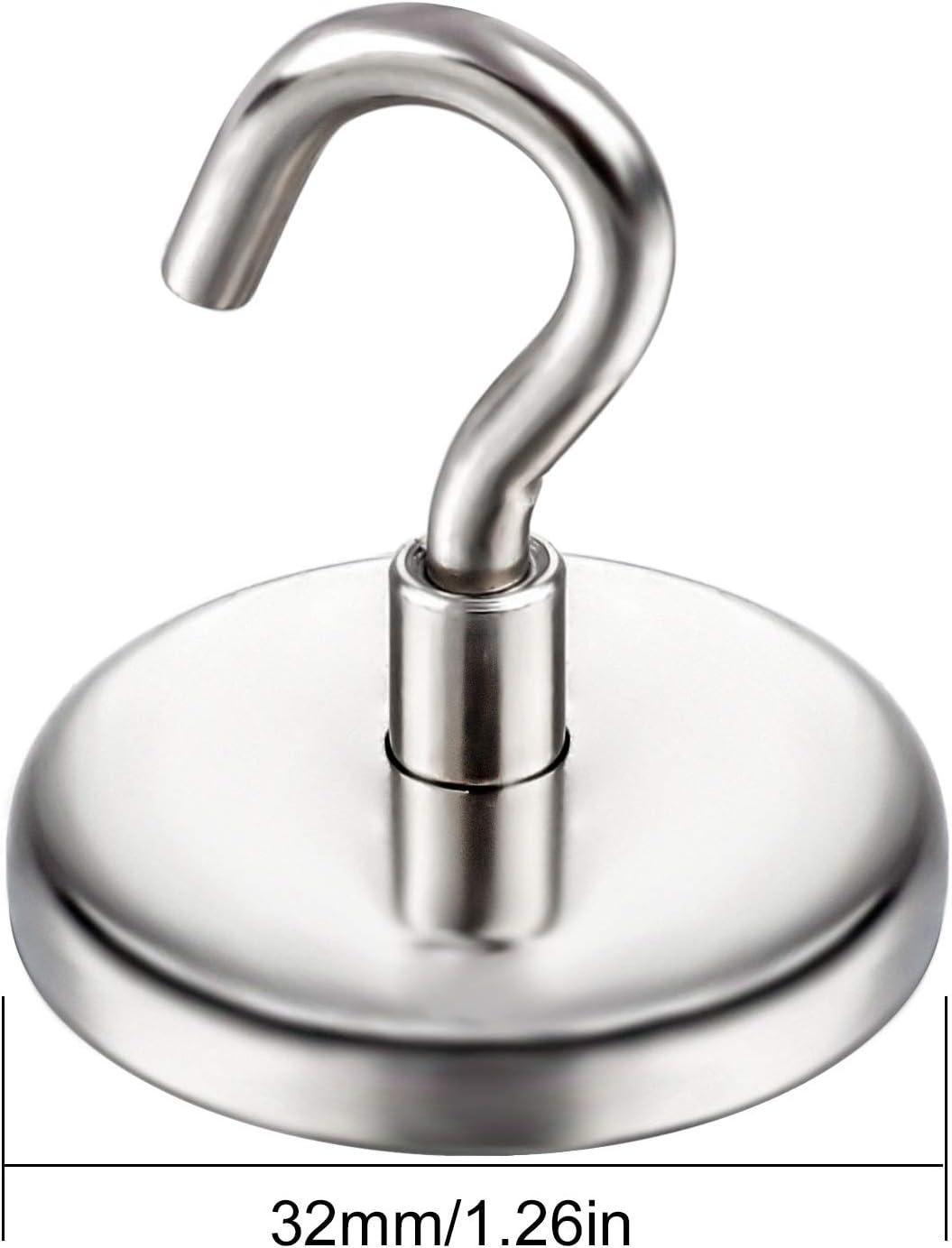 【Hanging Capacity】These strong metal magnetic hooks are able to sustain maximum weight up to 150 lbs on vertical hanging. Rare earth neodymium magnet hook with a 1.42 inches steel base in diameter, strong magnetism lasts forever!