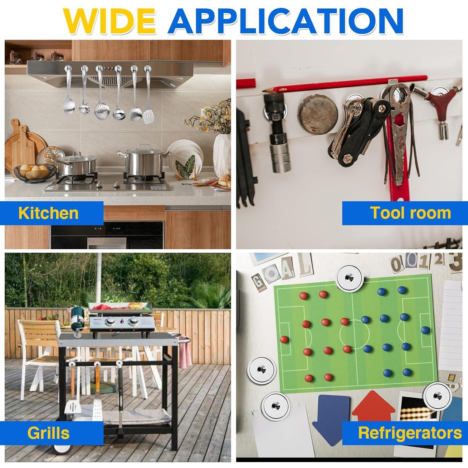 【Multifunctional Use】The neodymium cup magnets can be used in various life scenarios, making them very suitable for convenient assembly in homes, businesses, and schools! The powerful neodymium cup magnets will hold up some of your heavier hand tools quite well and very easily. Perfect for organizing and hanging in workshop, and decluttering your home, garage, business and schools. Holding, Lifting, Fishing, Closing, Retrieving, and much more