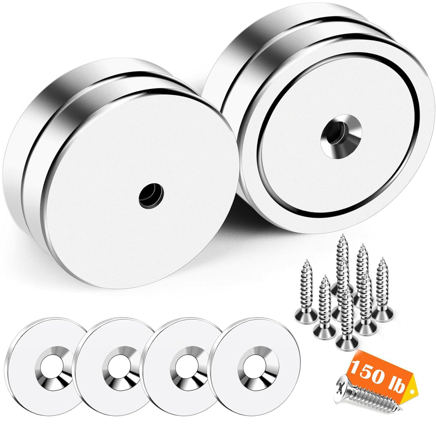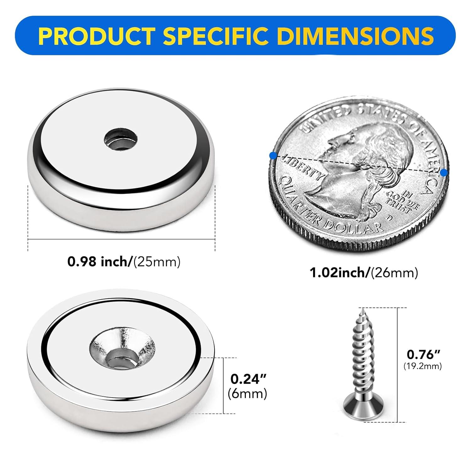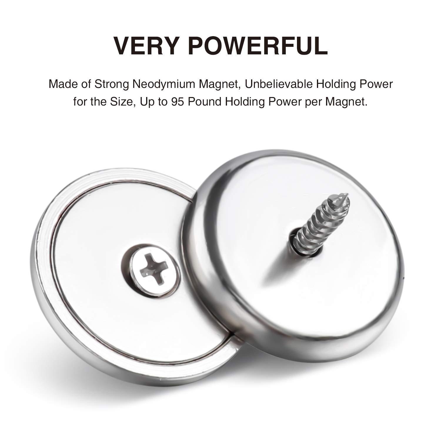 【Magnets with Holes Set】The set includes 4 strong neodymium cup magnets with holes and 8 adapter screws. Neodymium cup magnets are coated with three layers of epoxy+ nickel+ copper, so they provides a shiny and rust resistant protection for strong magnets heavy duty