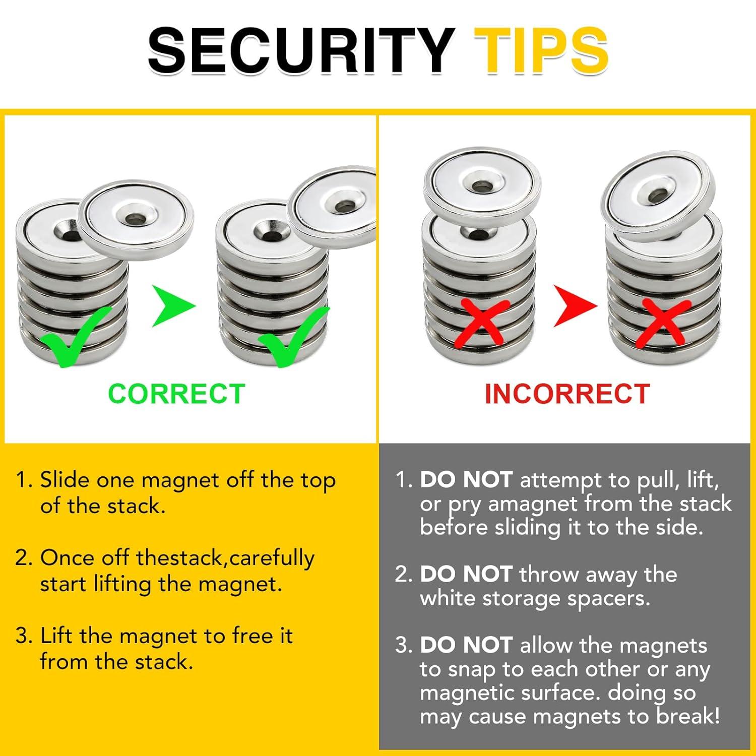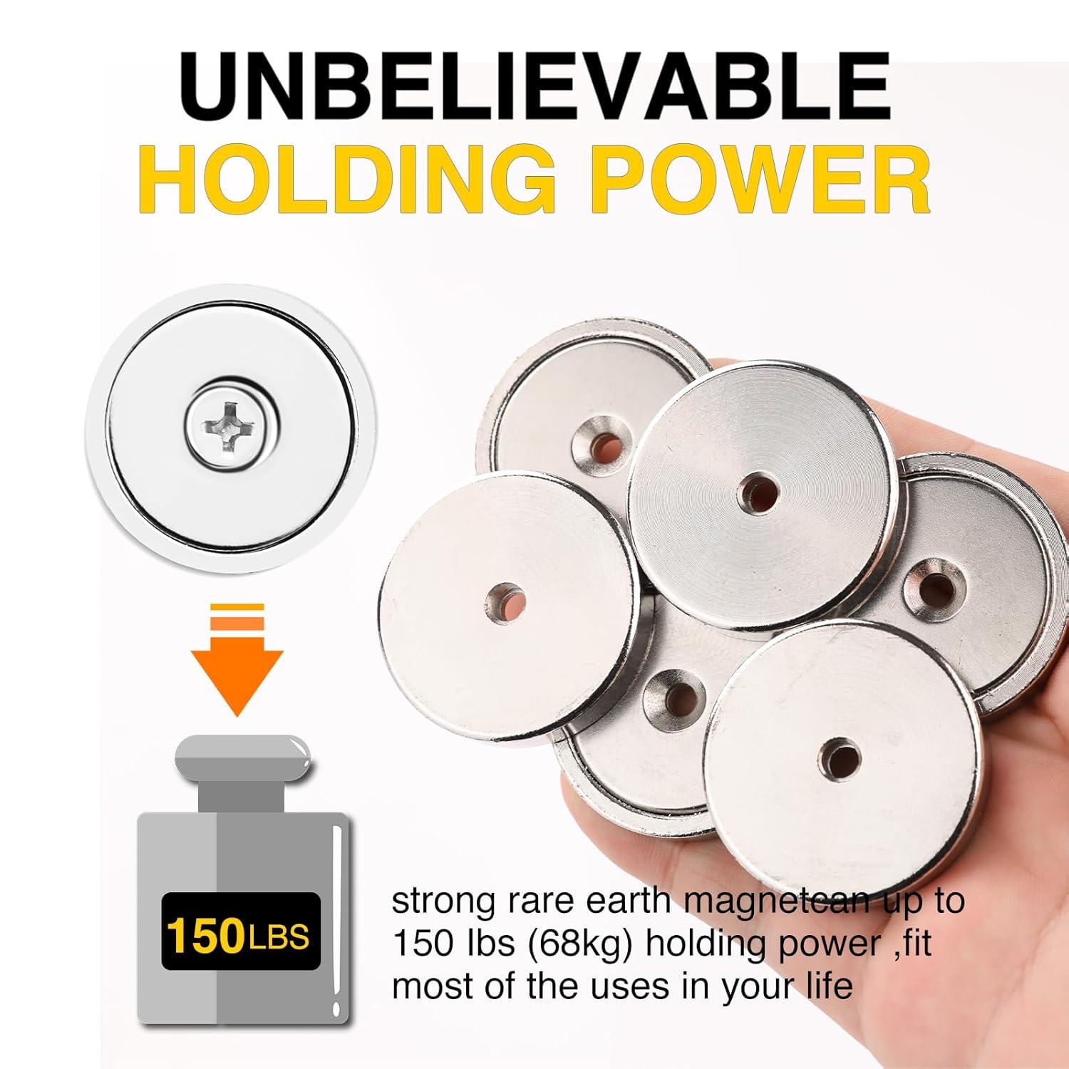 【Strong Powerful】These 1.42 inches strong round base magnets made of neodymium rare earth magnetic materia, each of these powerful 1.42-inch round base magnets possesses 150lb of magnetic force. Made of DIYMAG's industrial-grade high-power magnet and steel, it can hold steel tools firmly without worrying magnets breaking