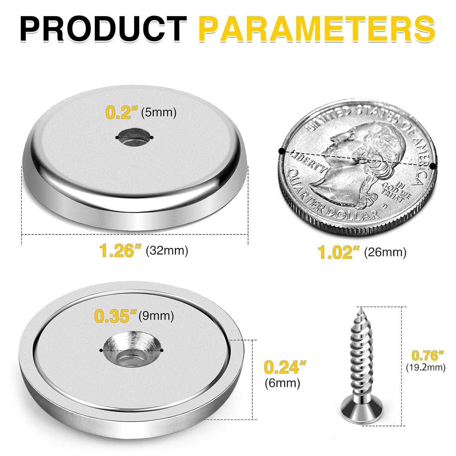 imageDIYMAG 6Pcs Neodymium Round Base Cup MagnetStrong Rare Earth Magnets with Heavy Duty Countersunk Hole and Stainless Screws for Refrigerator Magnets Office Craft 142 inch Blacksilver