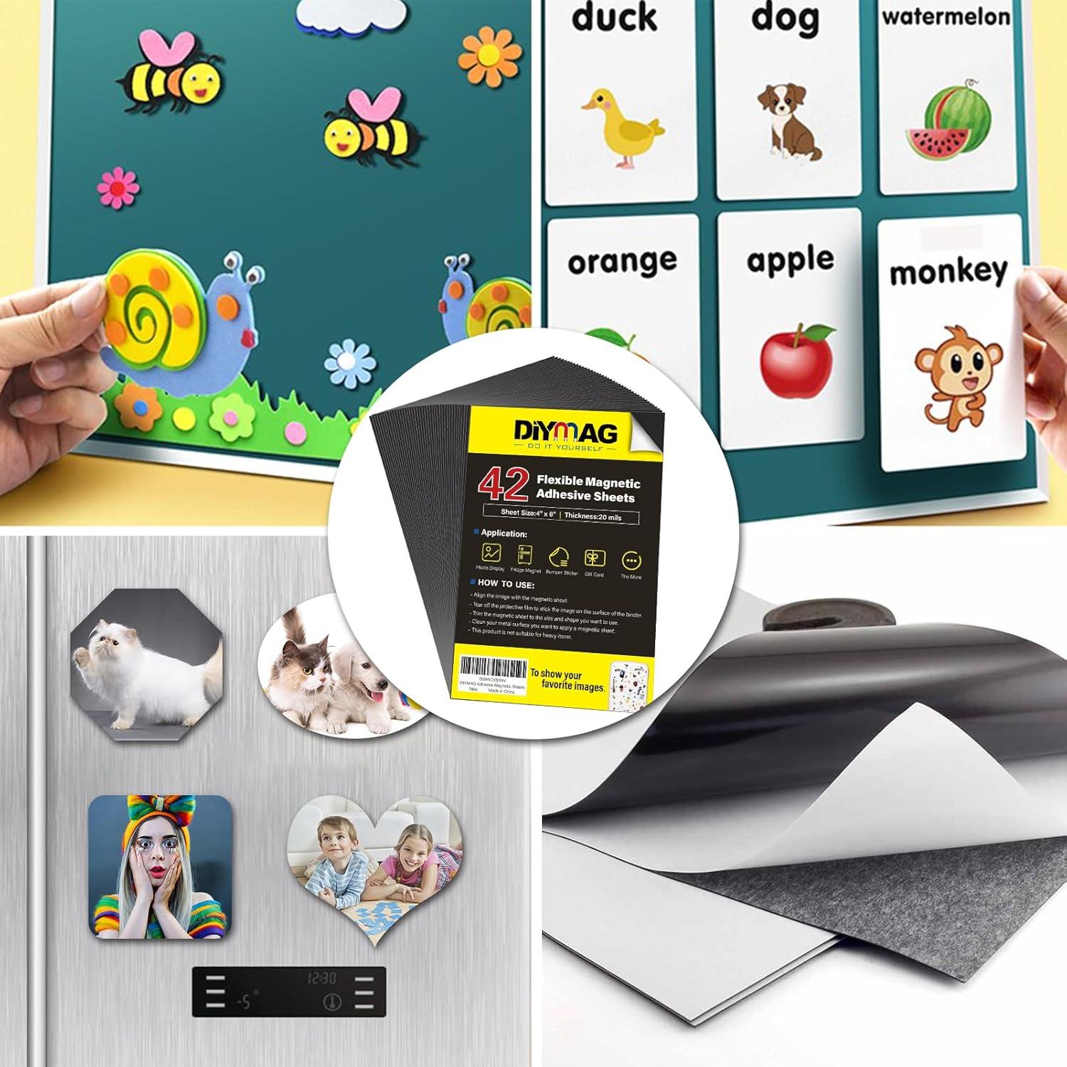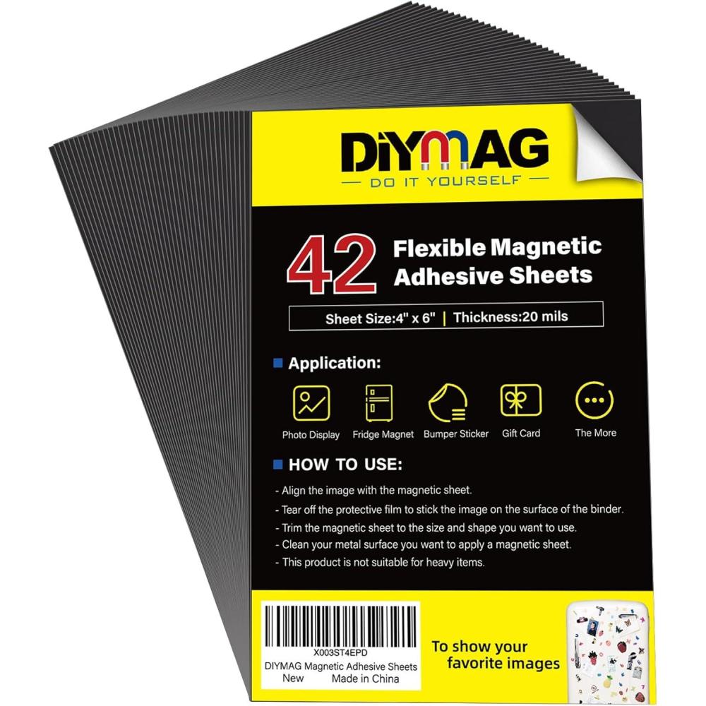 DIYMAG Adhesive Magnetic Sheets, |4/” x 6/”| 42 Packs, Flexible Magnet Sheets with Adhesive for Crafts, Photos and Die Storage, Easy Peel and Stick, Easy to Cut into Any Shape, 4/”x6/”-42P