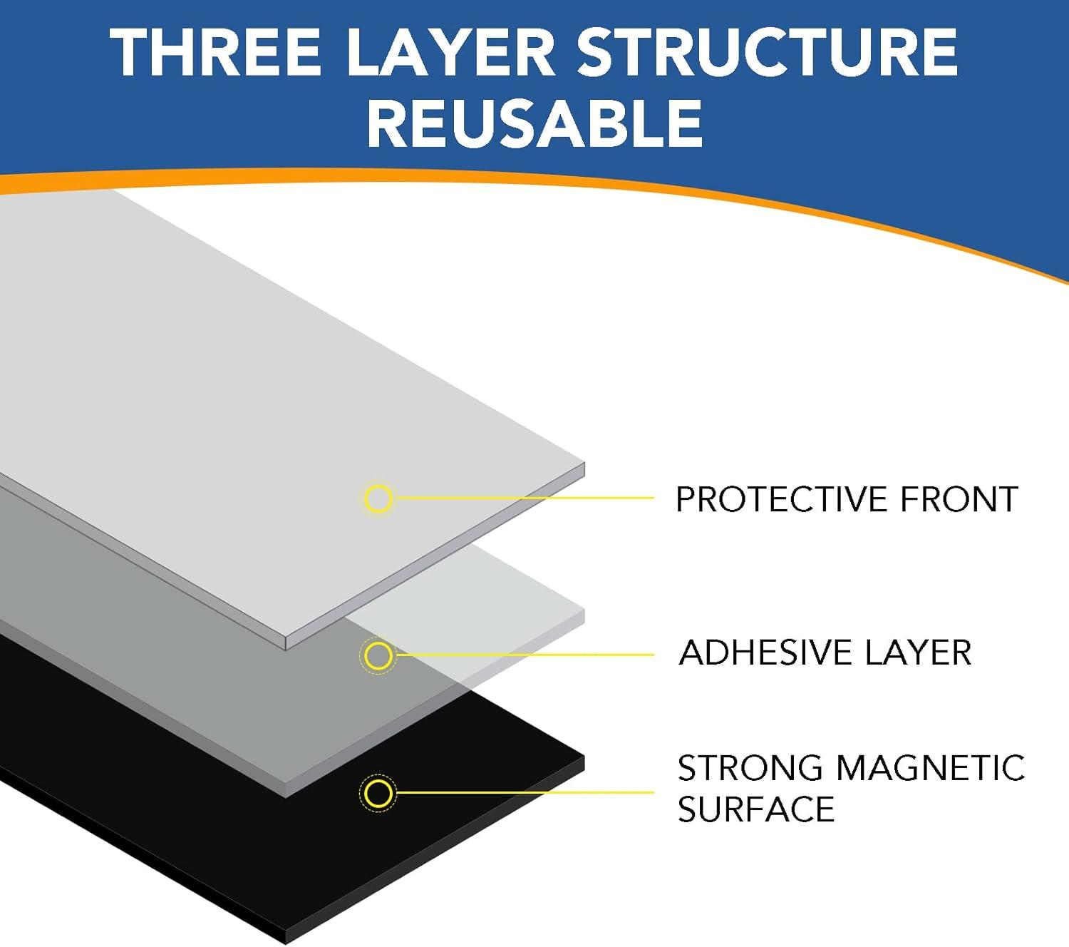 【Strong Adhesive】 Package includes 12 adhesive magnetic sheets .Magnet sheets with adhesive is made of premium strong adhesive material.Allowing you to stick anything you want.