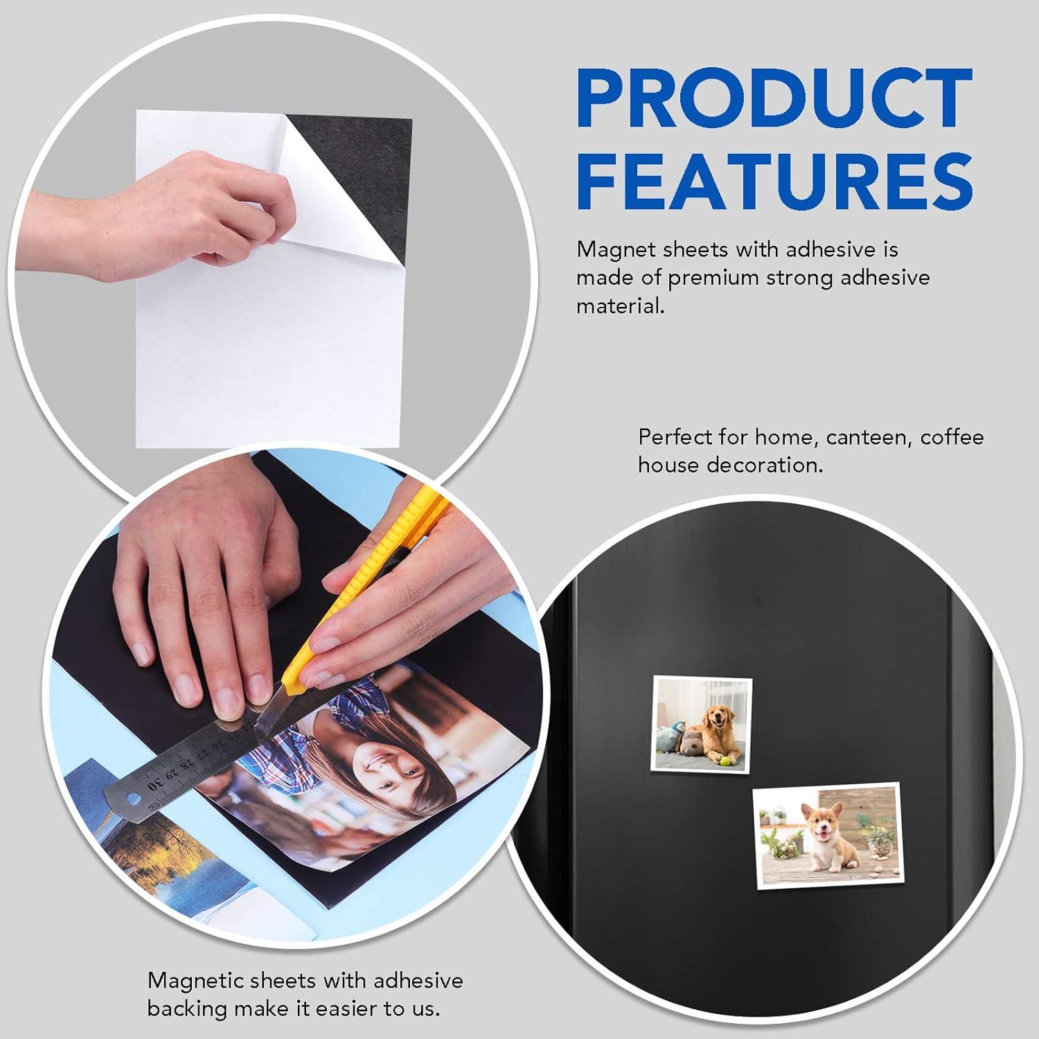 【Multiple Possibilities】Magnetic sheets with adhesive backing makes it easier to use, the magnet sheets can be conveniently cut into different sizes to perfectly accommodate your pictures / cards.We suggest measuring the size of your needs before trimming. After cutting, peel back the protective sheet, apply what you want, and then stick to any magnetic metal surface.