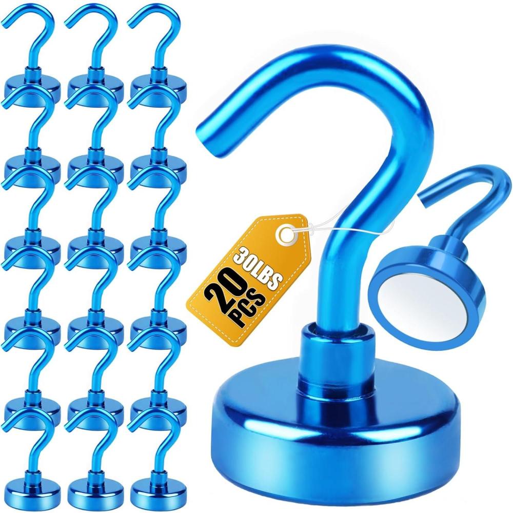 Powerful & Durable:We provide 3 layers of coating on the metal base, metal hook and magnet: Ni-Cu-Ni, so our magnet hooks have excellent anti-corrosion and scratch resistance. The magnetic hooks use high-quality neodymium magnets, which provide a strong magnetic force and can hang items weighing up to 30 pounds