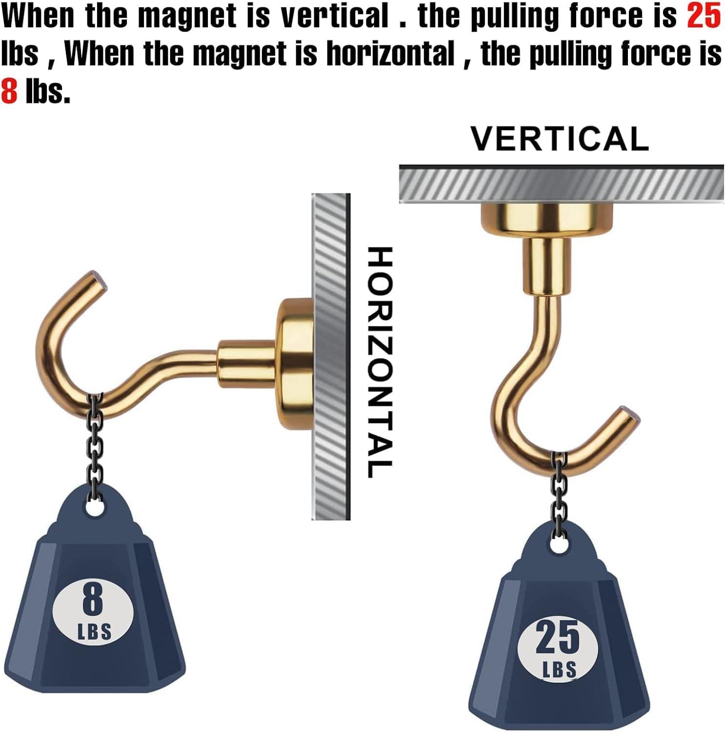 Powerful & Durable:We provide 3 layers of coating on the metal base, metal hook and magnet: Ni-Cu-Ni, so our magnet hooks have excellent anti-corrosion and scratch resistance. The magnetic hooks use high-quality neodymium magnets, which provide a strong magnetic force and can hang items weighing up to 30 pounds