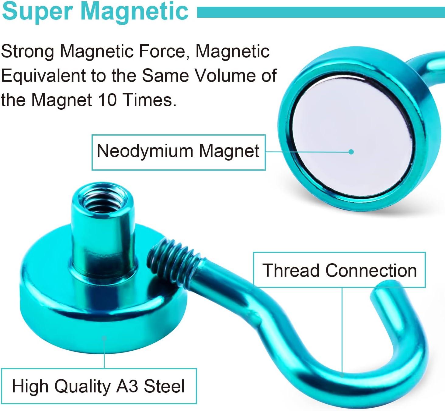 【High Quality】The strong magnetic hook is made of neodymium magnet and high quality A3 steel, the hook is strong and reliable. And the size is very portable