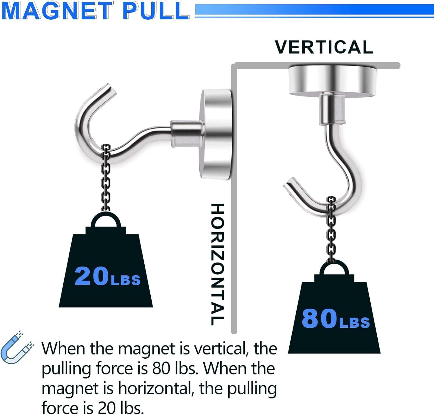 【Quality Guarantee】Heavy duty magnetic hooks are extremely high quality and are checked during and after production for quality, your purchase is protected. Please contact us if you have quality problems, we are very pleased to assist you to refund or make replacement.