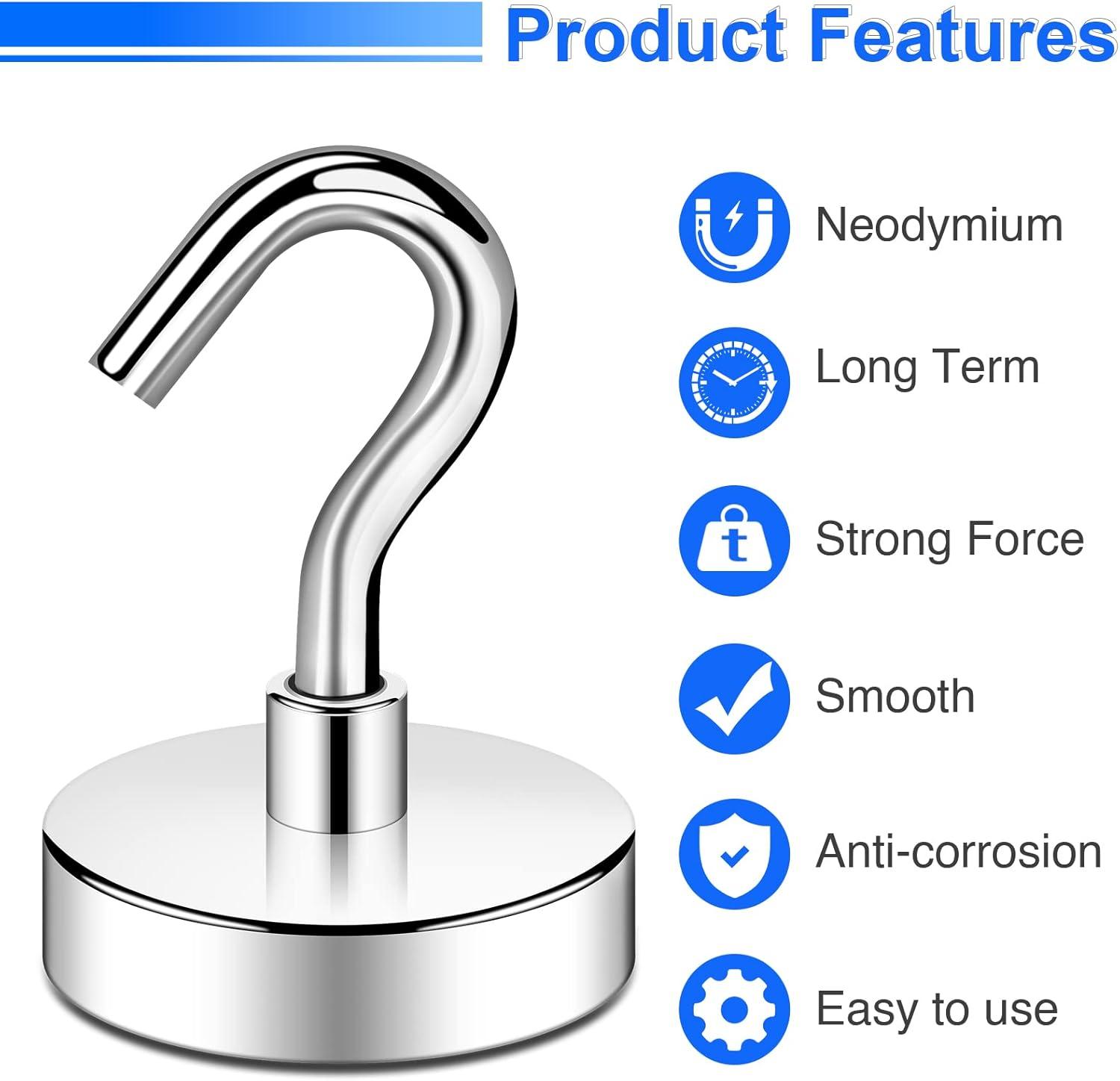 【Excellent Three layer Coating】Magnet hooks heavy duty are plated with 3 layers of protective coatings – Nickel + Copper + Nickel (Ni-Cu-Ni), which can greatly resist rust and corrosion, making magnetic hooks ideal for long term use.