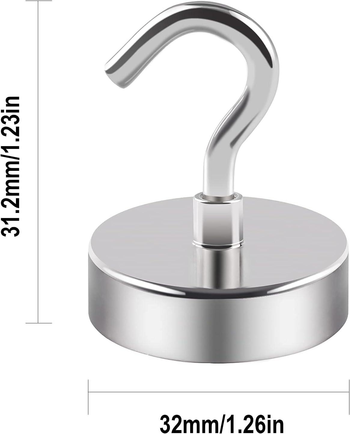 【Hanging Capacity】These strong metal magnetic hooks are able to sustain maximum weight up to 110 lbs on vertical hanging. Rare earth neodymium magnet hook with a 1.26 inches steel base in diameter, strong magnetism lasts forever!