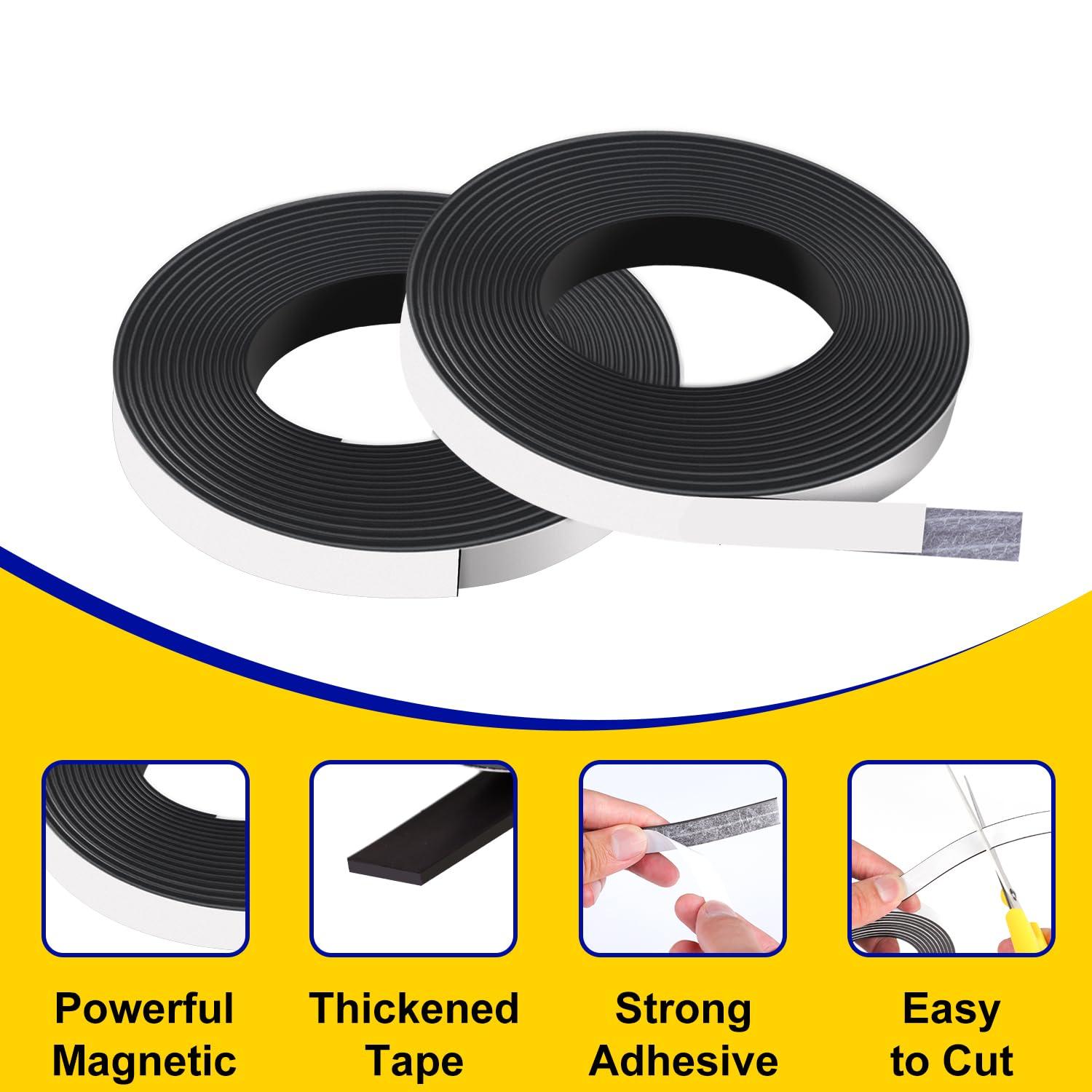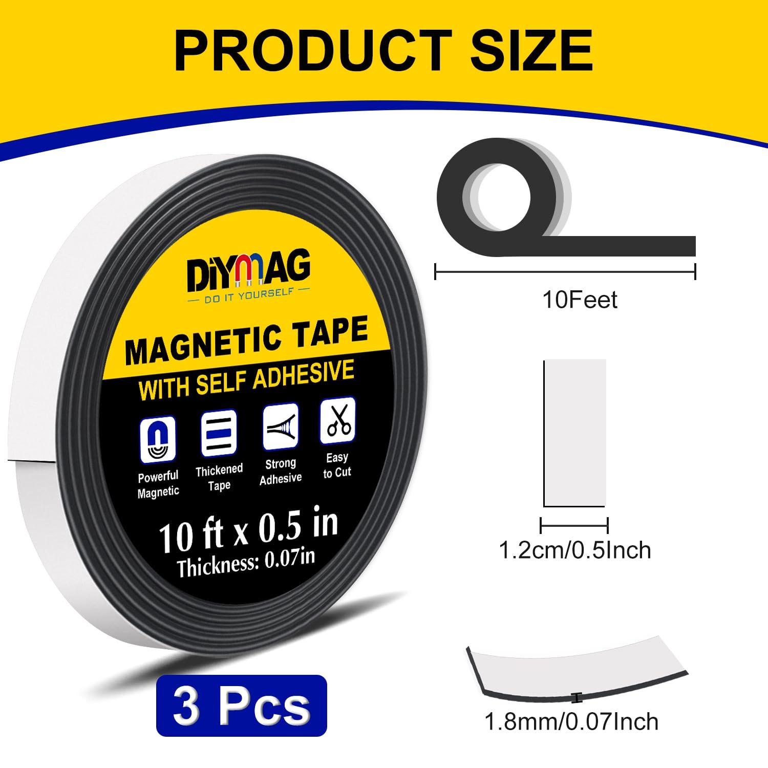 DIYMAG Magnetic Tape, 10 Feet x 1/2 Inch 3 Rolls Strong Magnetic Strip with Self Adhesive Flexible Magnet Tape Roll for Lightweight Craft, DIY Projects, Whiteboards and Fridge Organization(2Roll-20Ft)