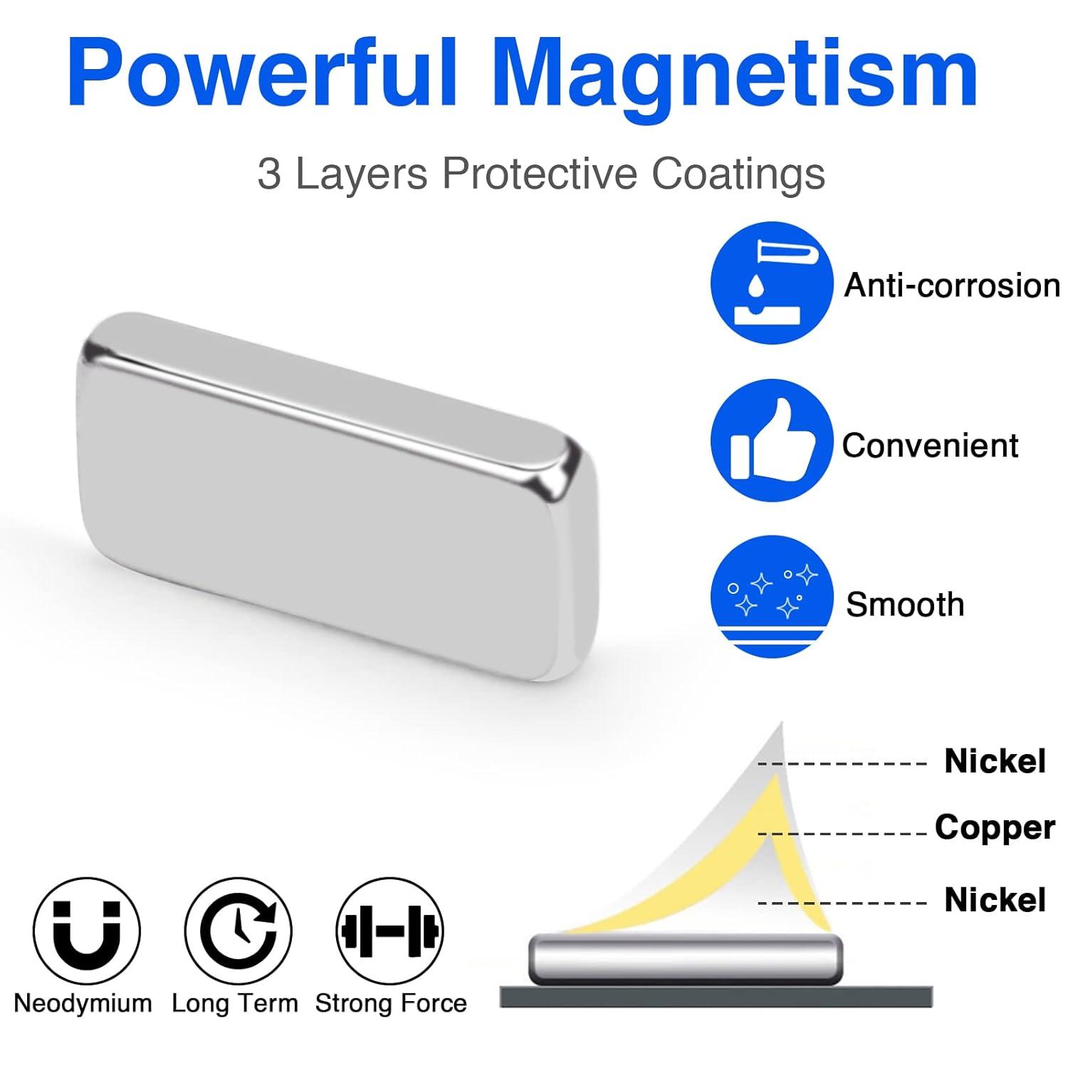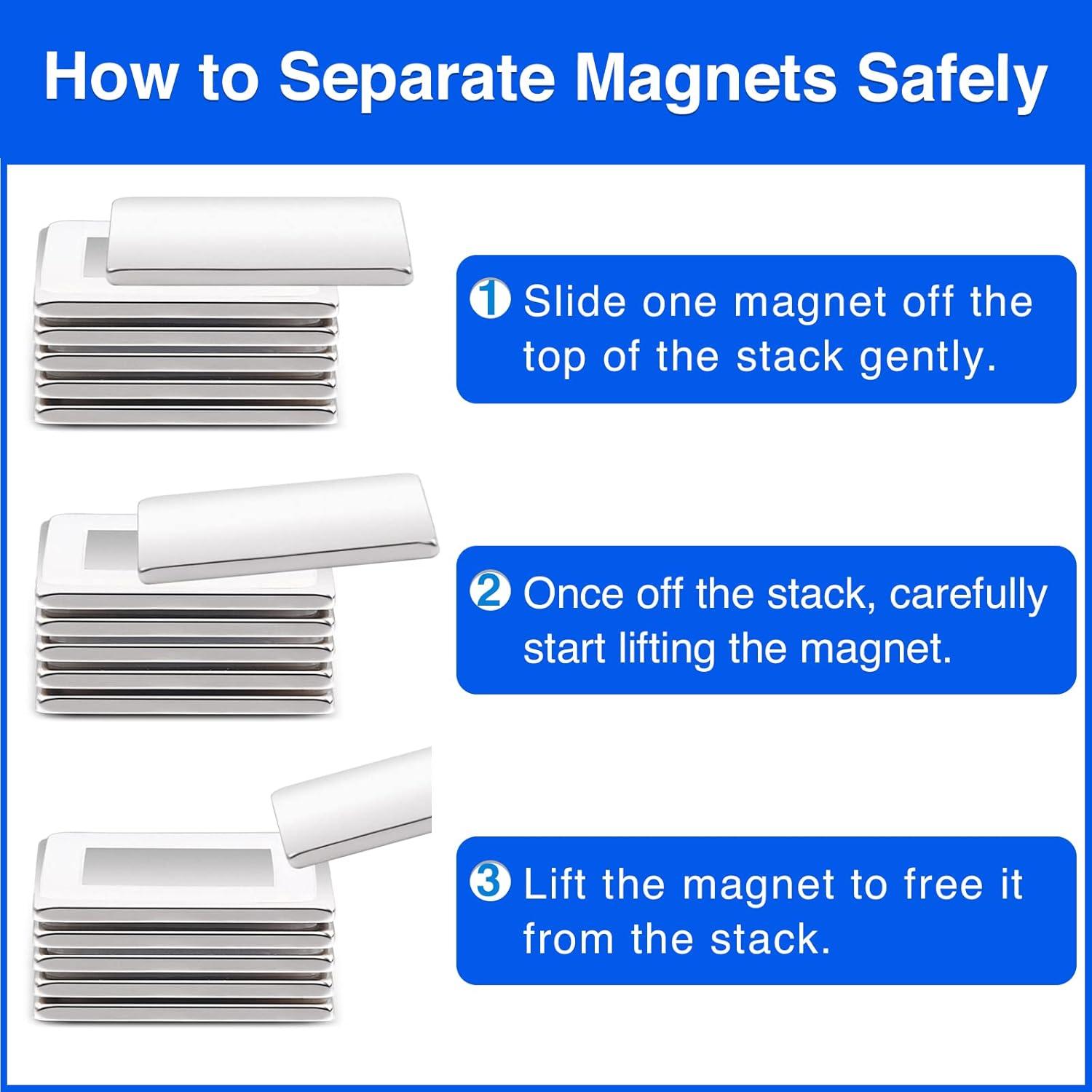【PREMIUM COATING】Coated with three layers of nickel, copper and nickel to reduce corrosion and provide a smooth finish which greatly increase the longevity of the rare earth bar magnets.Sturdy and reliable. When you separate the strip magnets, be careful and slide gently