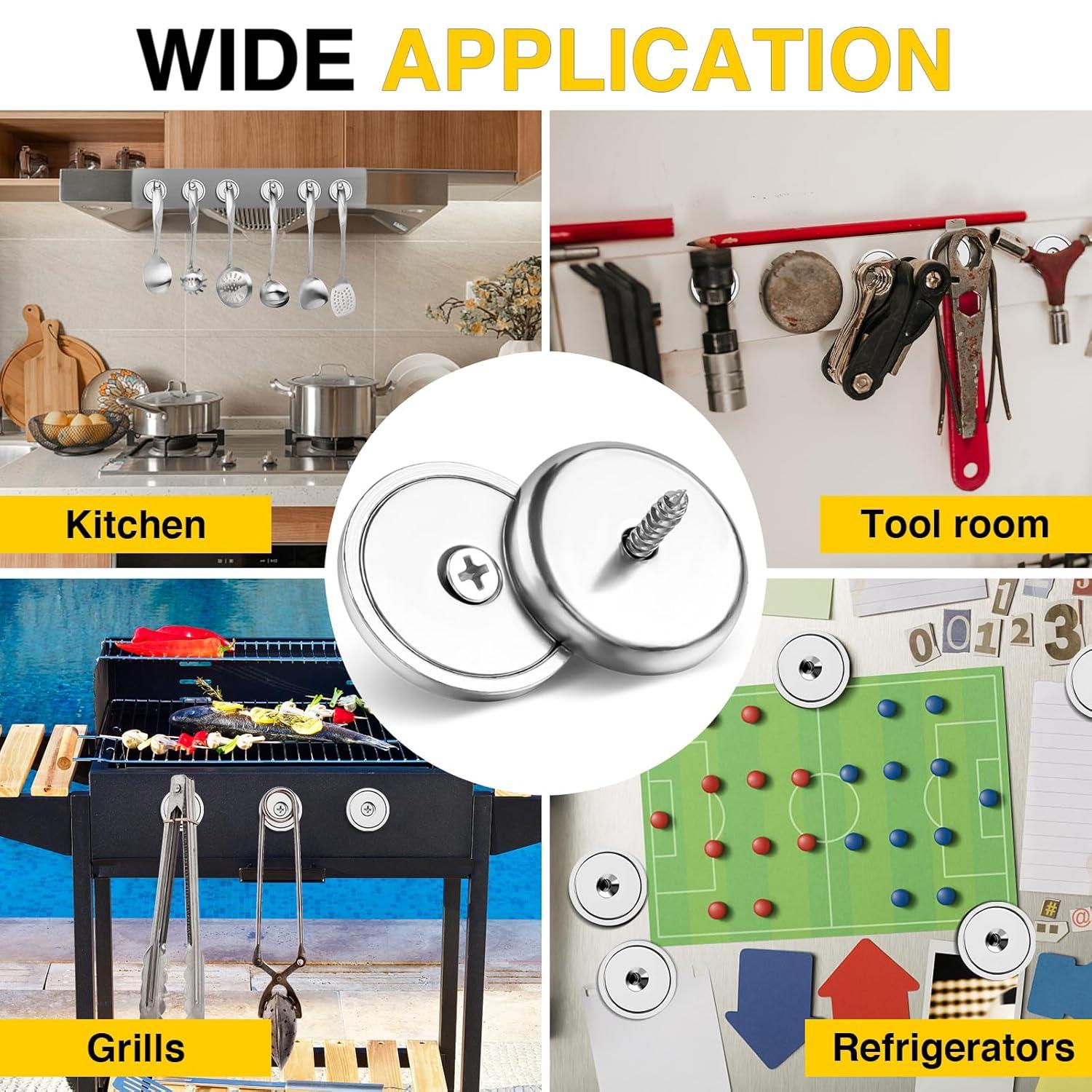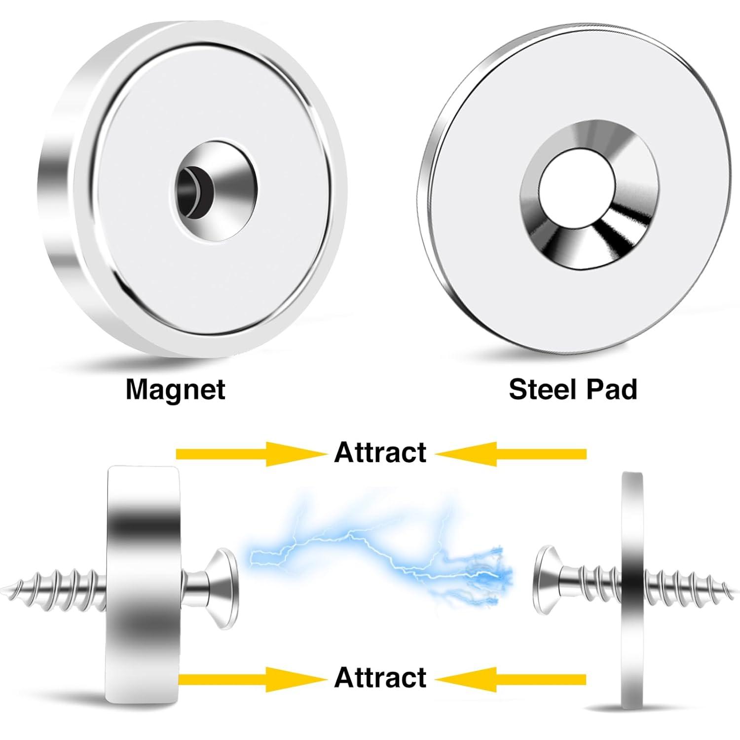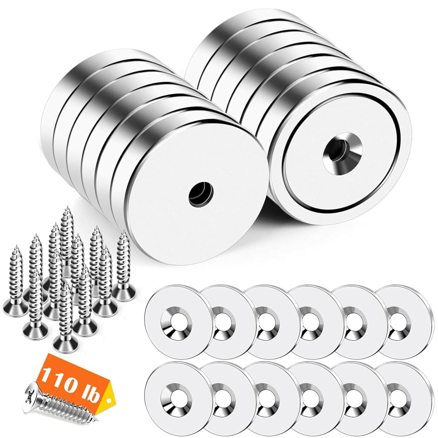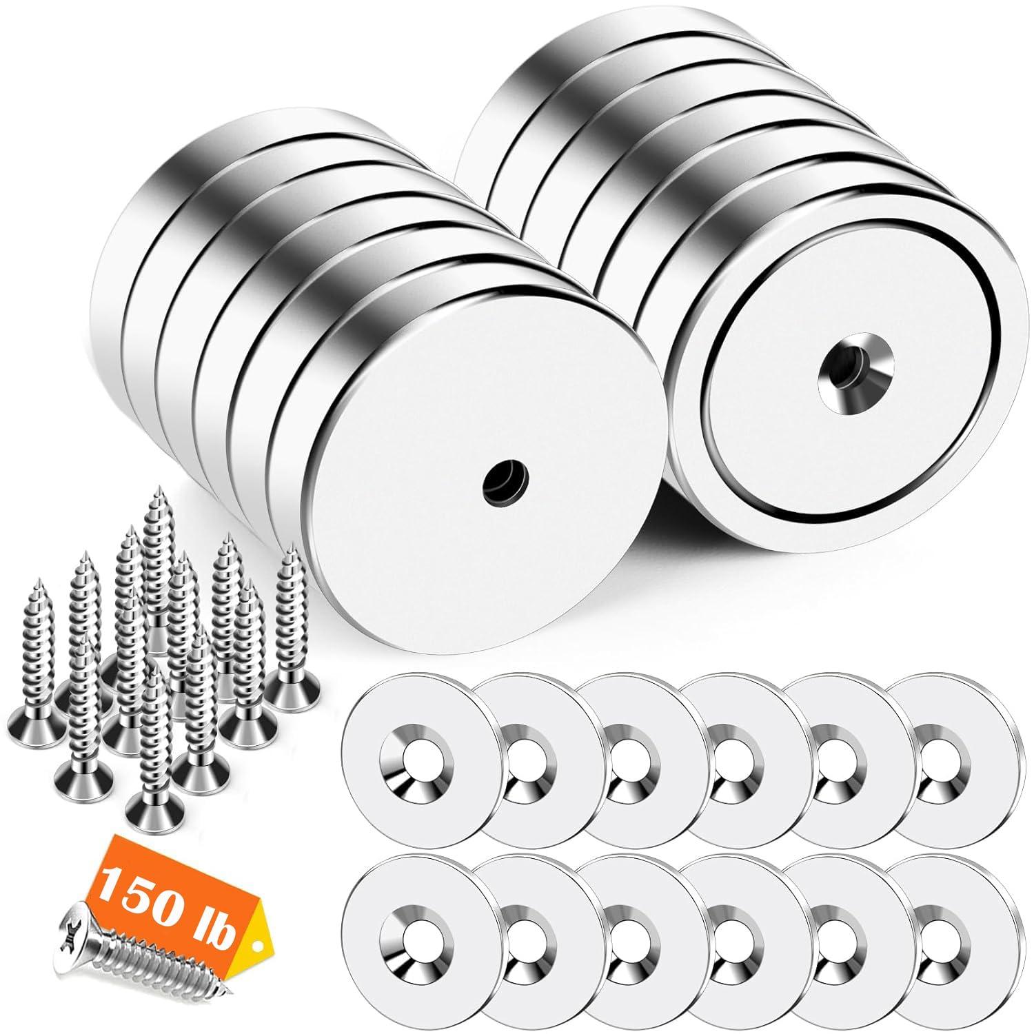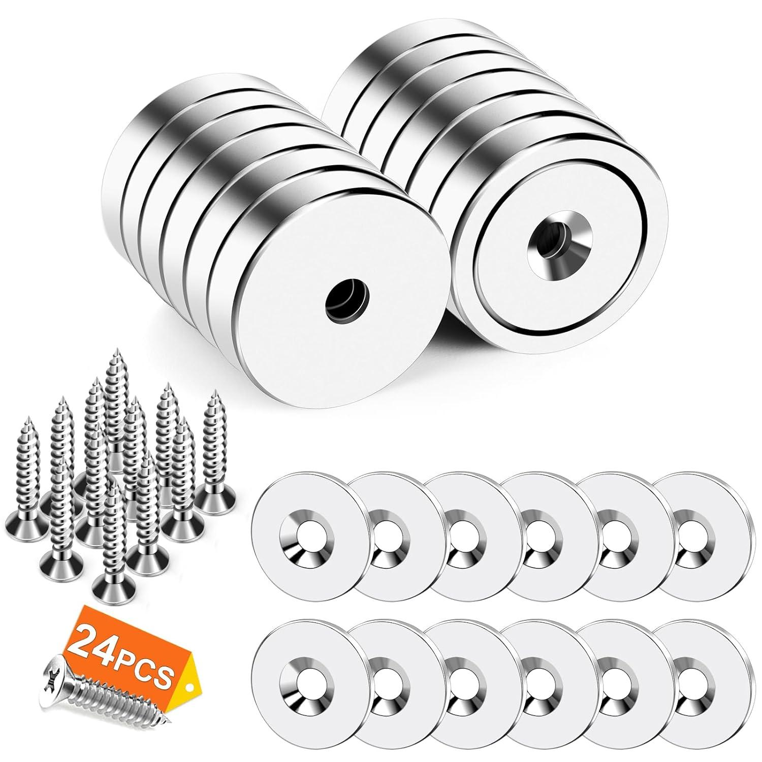【Magnets with Holes Set】The set includes 12 strong neodymium cup magnets with holes and 24 adapter screws. Neodymium cup magnets are coated with three layers of epoxy+ nickel+ copper, so they provides a shiny and rust resistant protection for strong magnets heavy duty