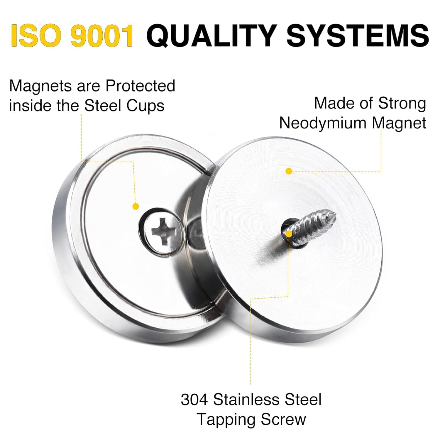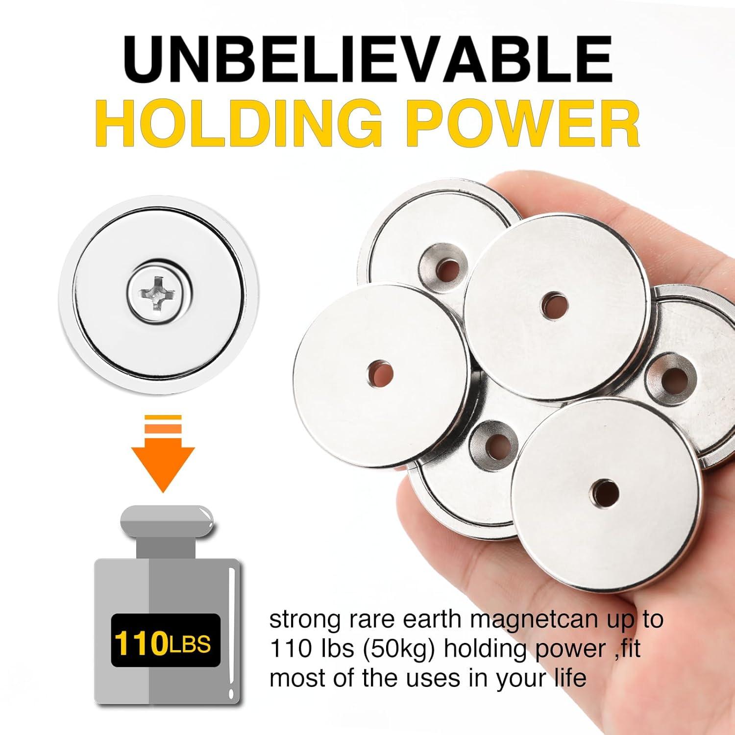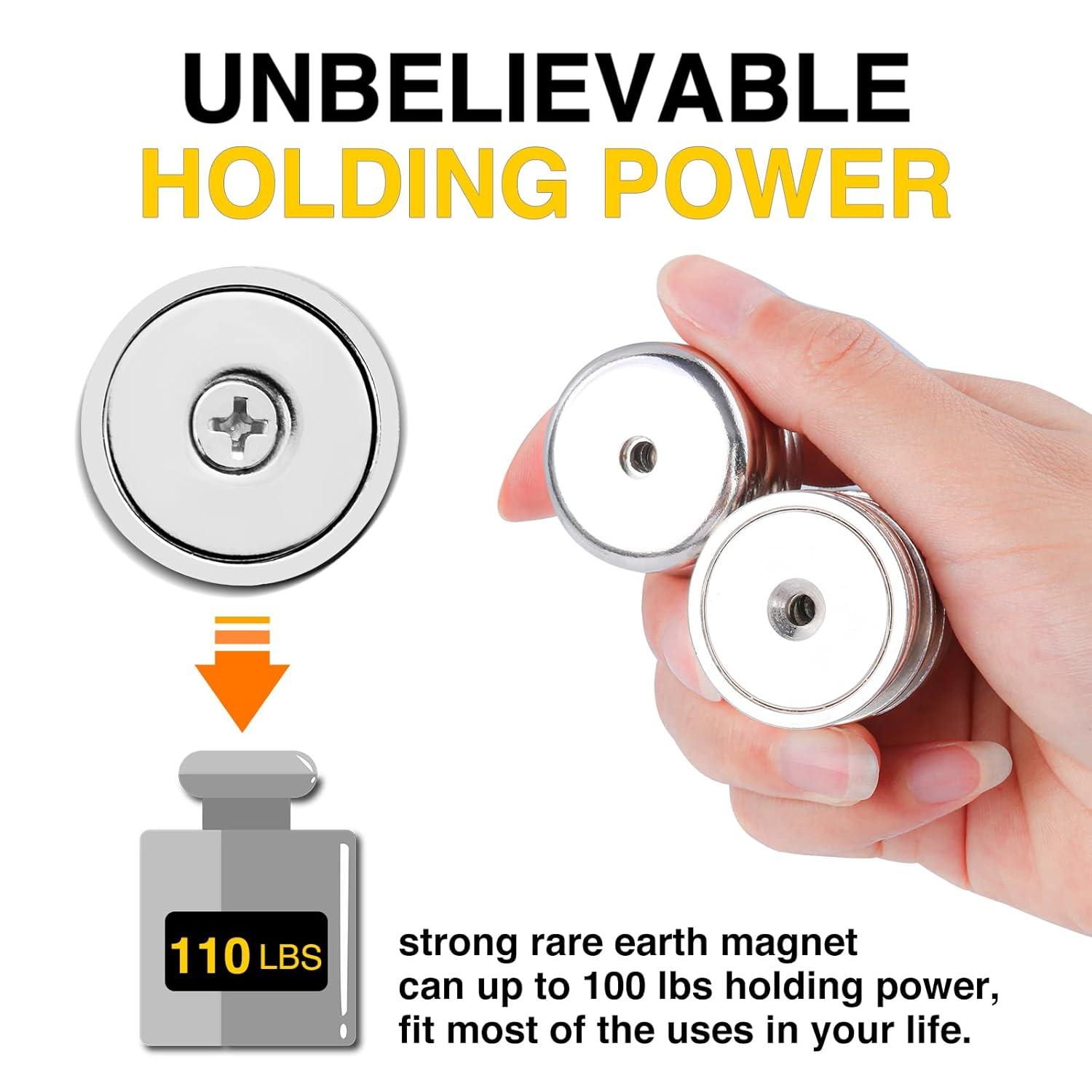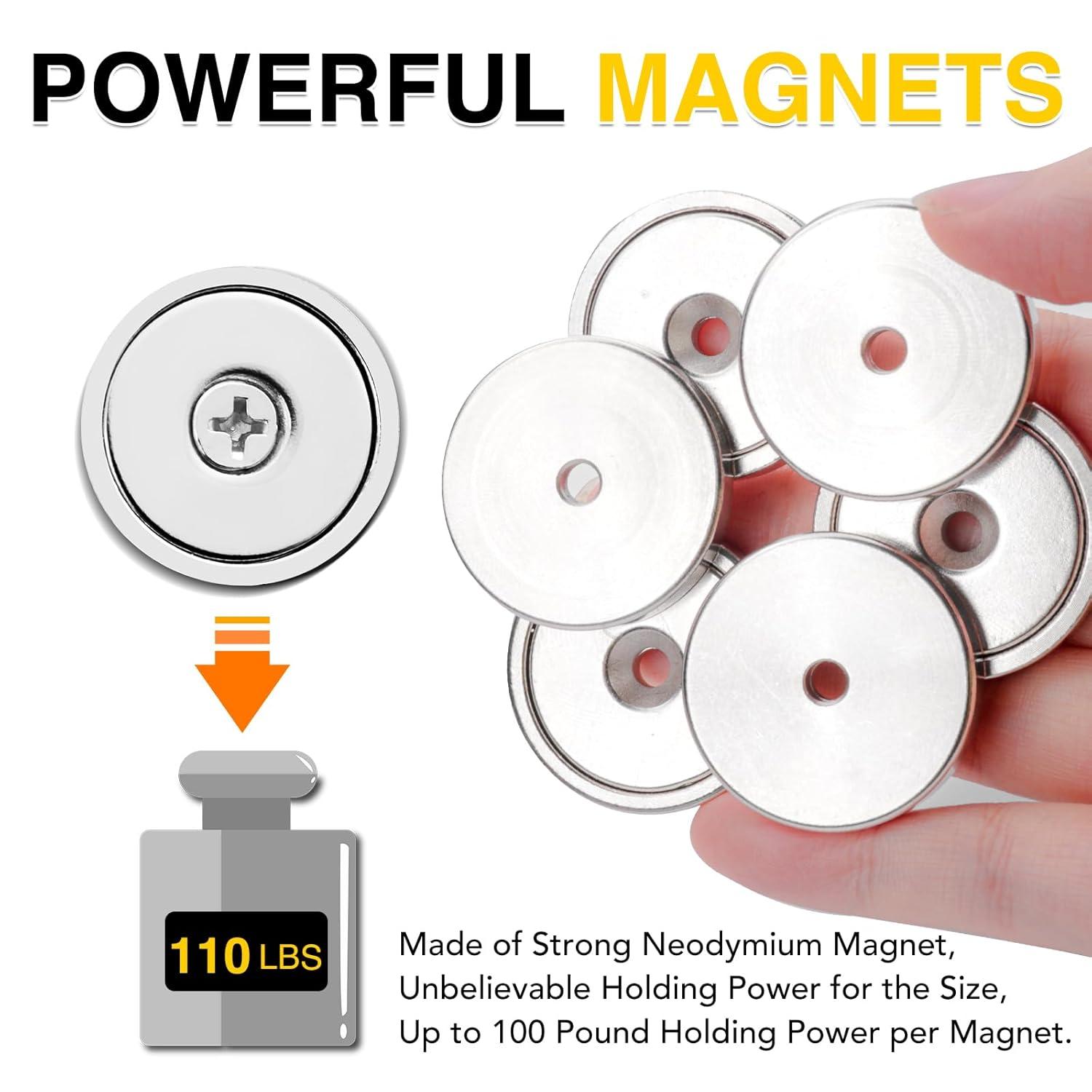 【Very Durable】These strong magnets with hole are made of NdFeB material with a nickel-plated coat for maximum durability and protection against corrosion. And this heavy duty cup magnets is made of precision mechanical vehicles and these magnets will not break in normal use since the magnets are protected inside the steel cups which greatly increase the longevity of the magnets