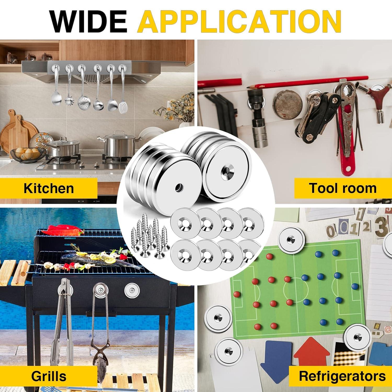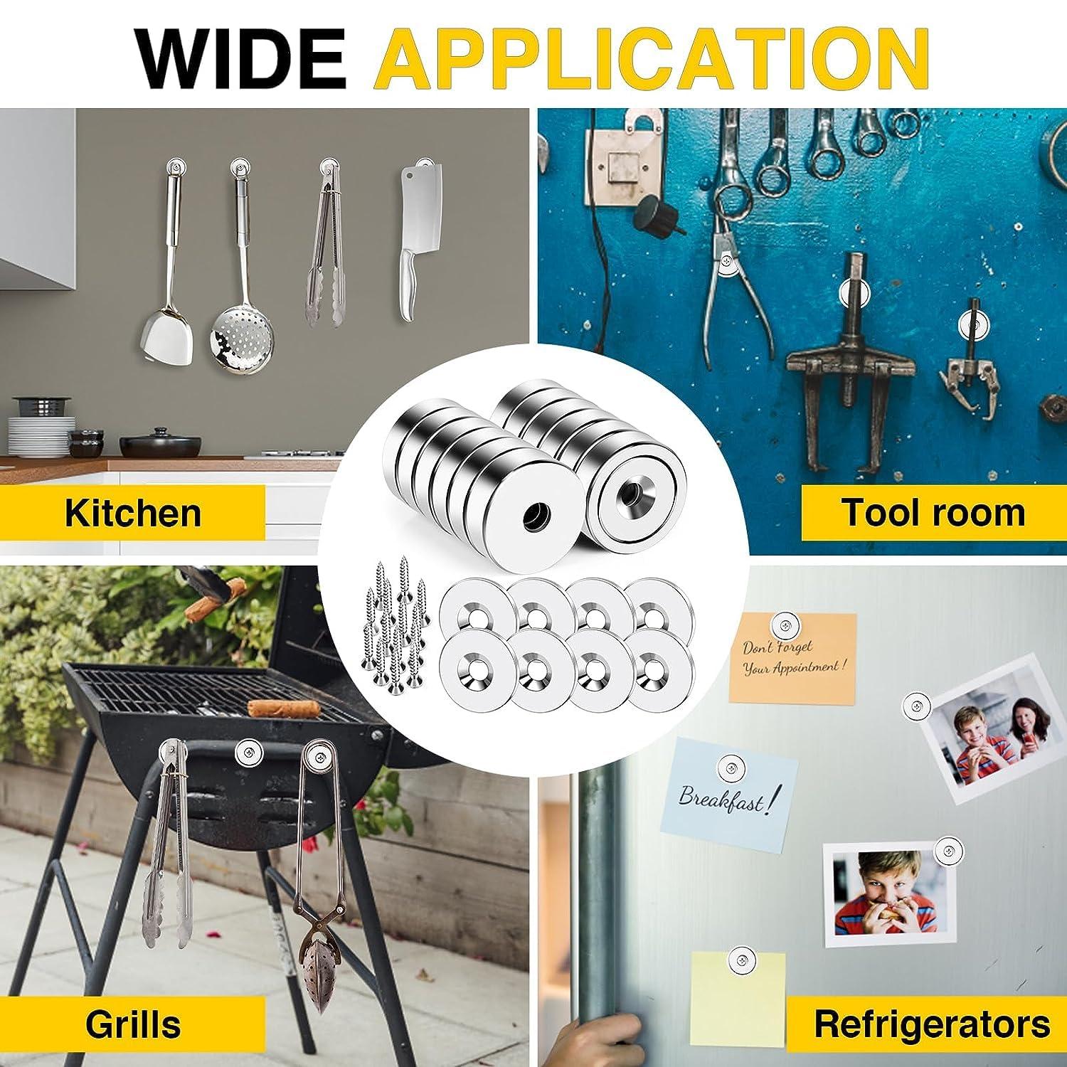 【Multifunctional Use】The neodymium cup magnets can be used in various life scenarios, making them very suitable for convenient assembly in homes, businesses, and schools! The powerful neodymium cup magnets will hold up some of your heavier hand tools quite well and very easily. Perfect for organizing and hanging in workshop, and decluttering your home, garage, business and schools. Holding, Lifting, Fishing, Closing, Retrieving, and much more