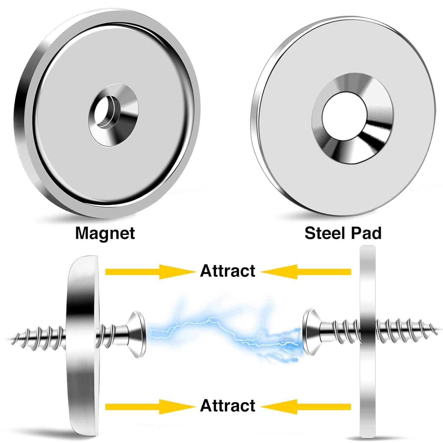 imageDIYMAG Neodymium Round Base Cup Magnet Strong Rare Earth Magnets with Heavy Duty Countersunk Hole and Stainless Screws for Refrigerator Magnetic Office Craft SilverBlack