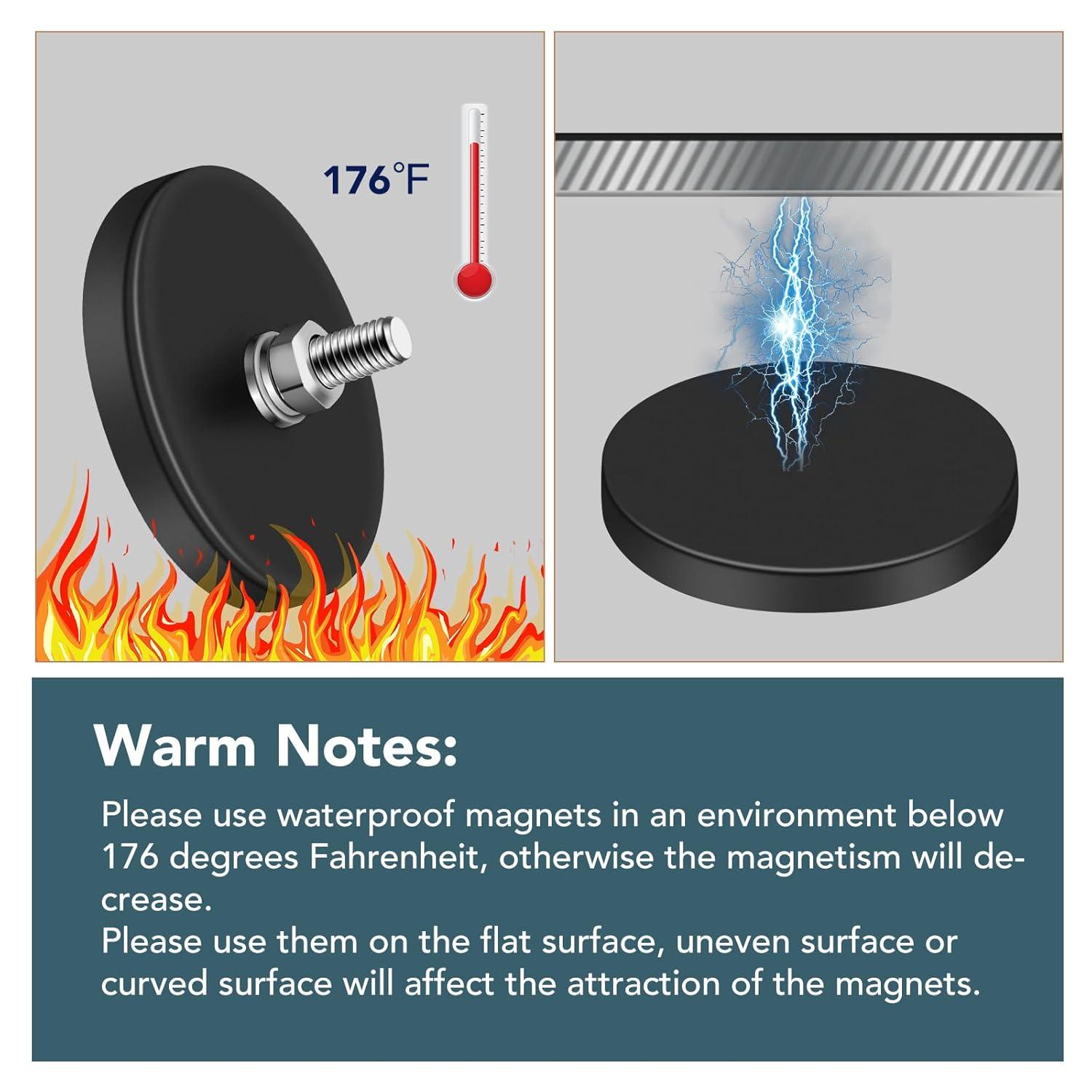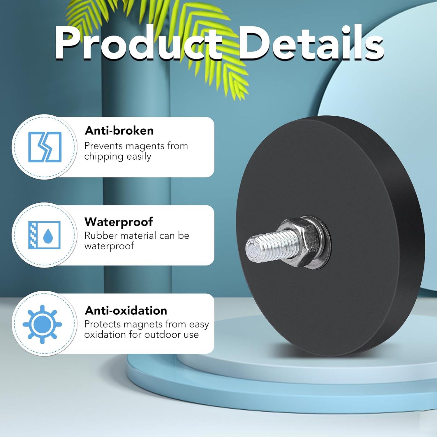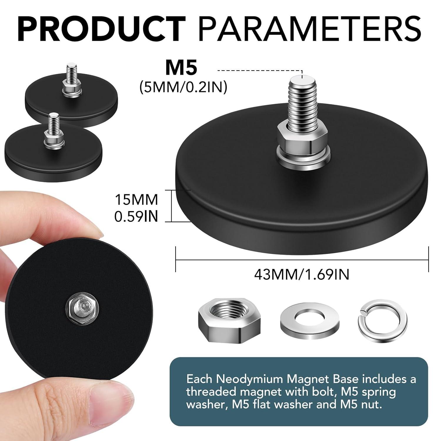 Complete Range of Accessories: You will receive 12 packs of threaded magnets with black rubber coating, including threaded magnets with bolts, M8 spring washers, M8 flat washers and M8 nuts, a larger number of sets will better meet your usage needs.