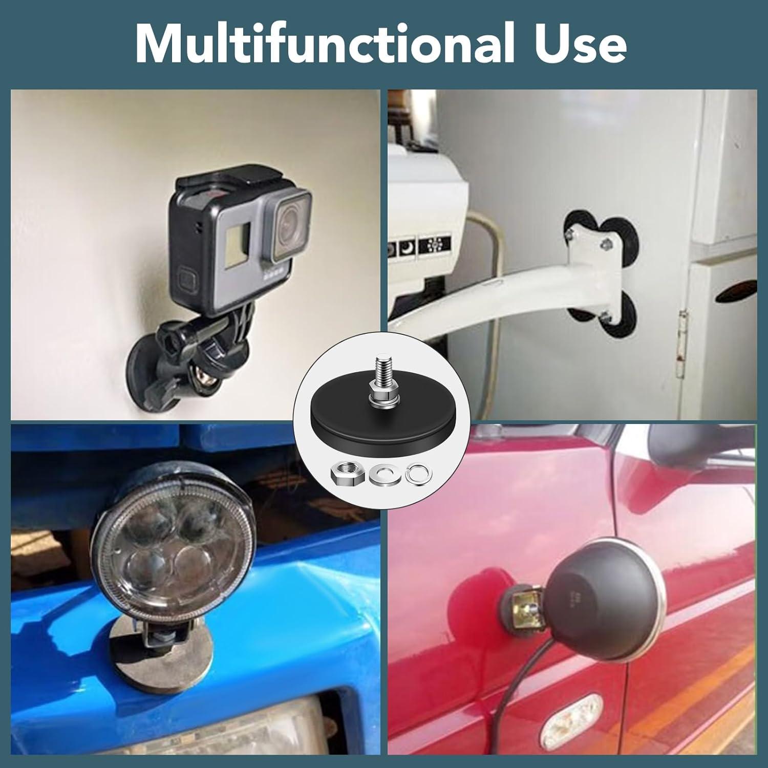 imageDIYMAG 4Pcs Rubber Coated AntiScratch Mounting Magnets Adhesive Power 30LBS Neodymium Magnet Based with M5 Threaded Studs Strong Magnetic Hold The Base for Light Bar Mirror Camera PTZ169 Inch20p Hex Bolt