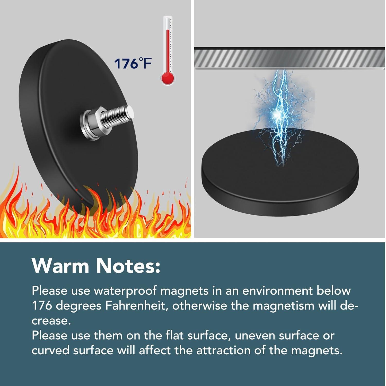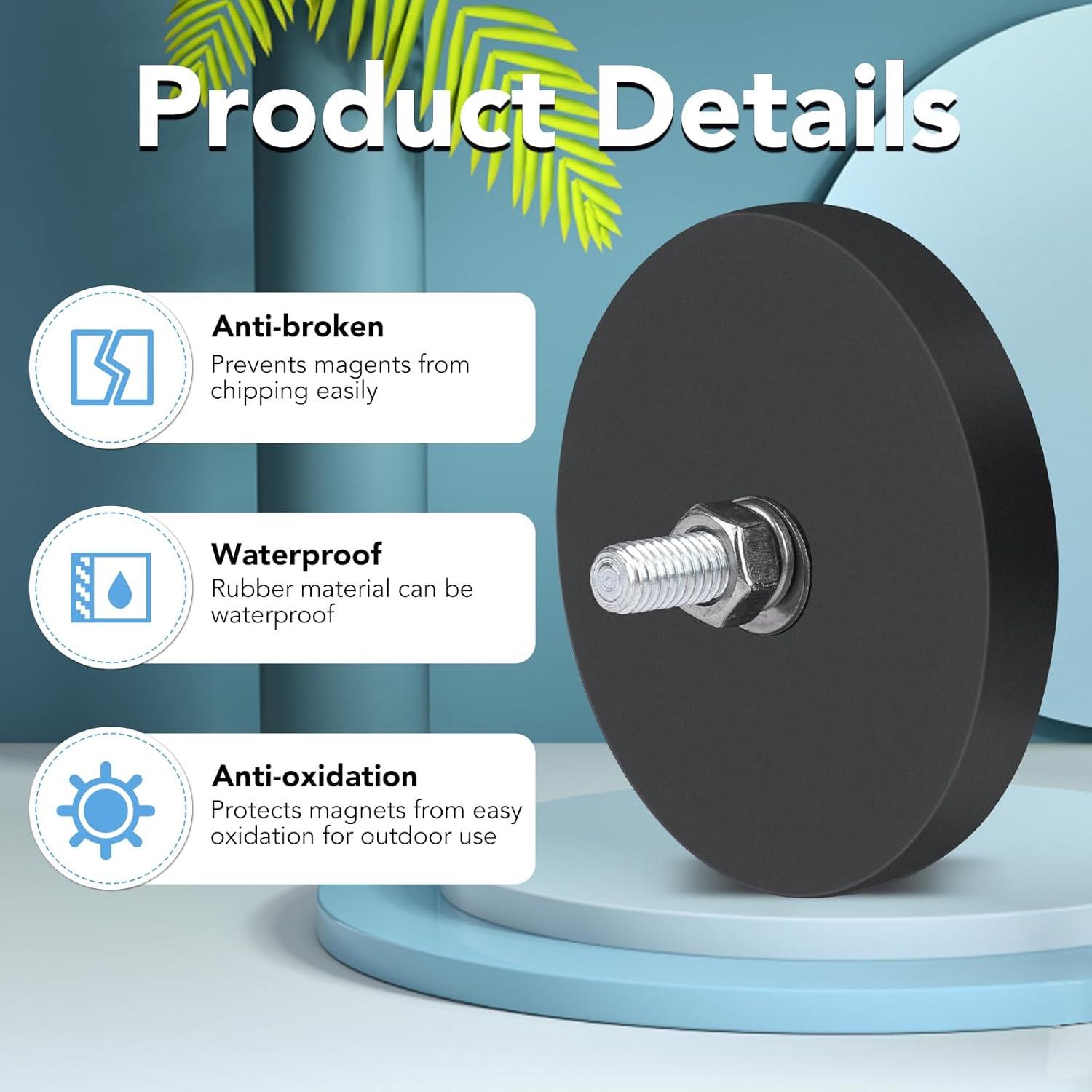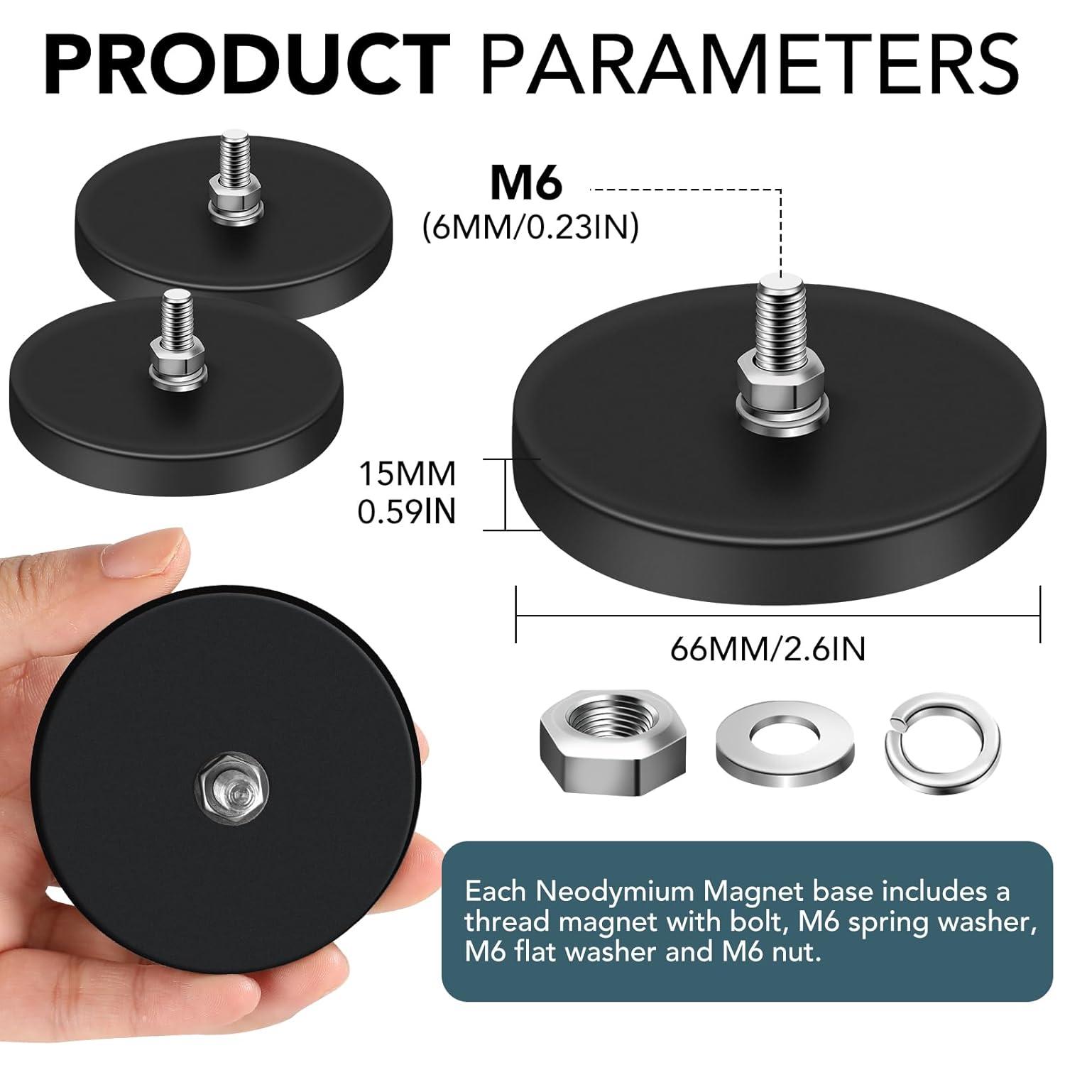 Complete Range of Accessories: You will receive 12 packs of threaded magnets with black rubber coating, including threaded magnets with bolts, M8 spring washers, M8 flat washers and M8 nuts, a larger number of sets will better meet your usage needs.