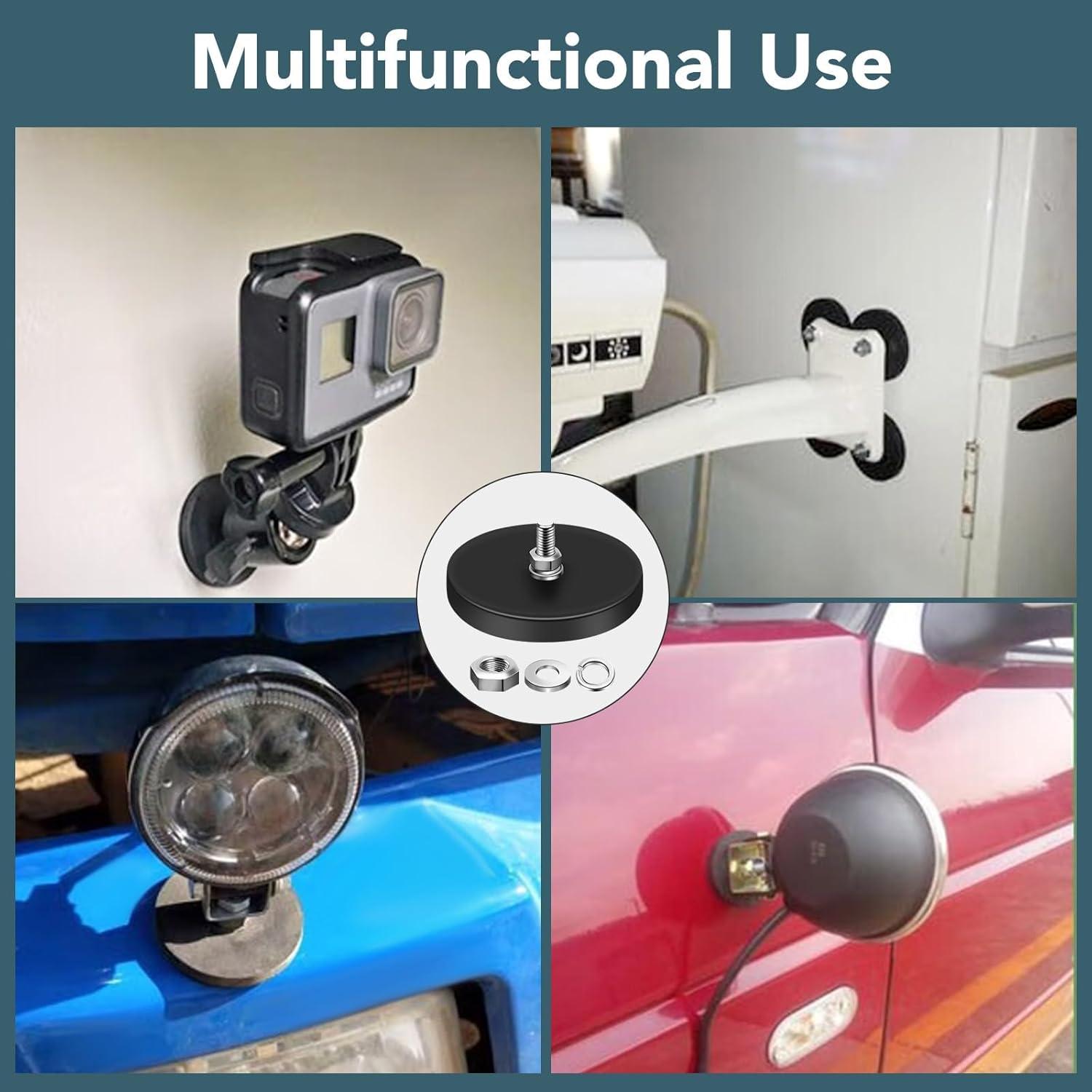 imageDIYMAG Rubber Coated Magnets 12 Pcs Adhesive Power 120LBS AntiScratch Neodymium Magnet Base with M8 Threaded Studs and Nuts Black Strong Magnets Hold for Light Bar Mirror Camera PTZM665LB259in