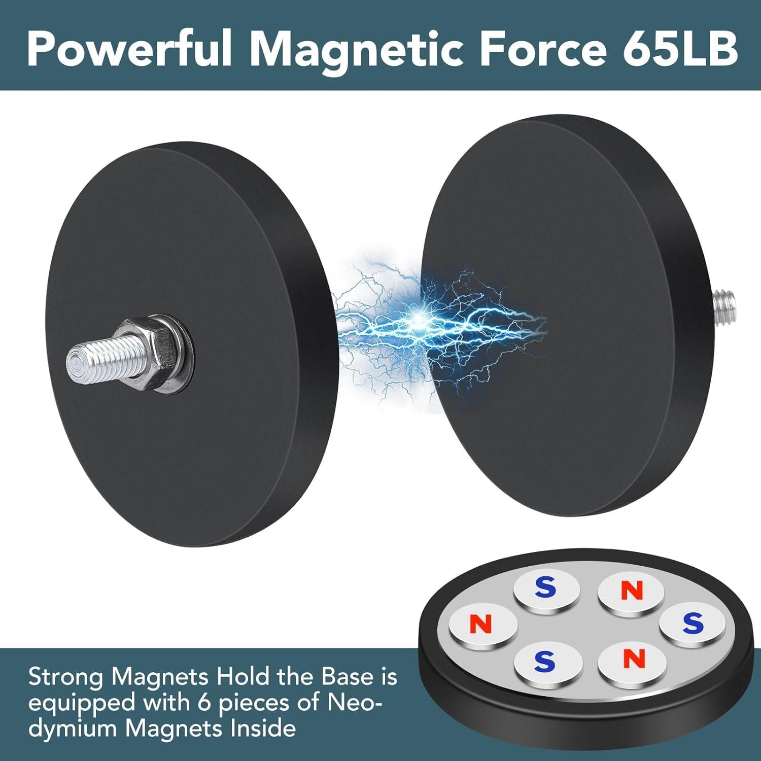 Strong Magnets Hold the Base: Round base with rubber coating is measured 3.5″ in diameter, and it is equipped with 12 pieces of neodymium magnets inside, has a vertical magnetic pull force of 10LBS on base of steel plate.