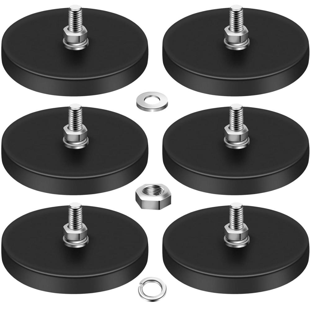 DIYMAG Rubber Coated Magnets 12 Pcs Adhesive Power 120LBS Anti-Scratch Neodymium Magnet Base with M8 Threaded Studs and Nuts, Black Strong Magnets Hold for Light Bar, Mirror, Camera, PTZ(M6-65LB-2.59in)