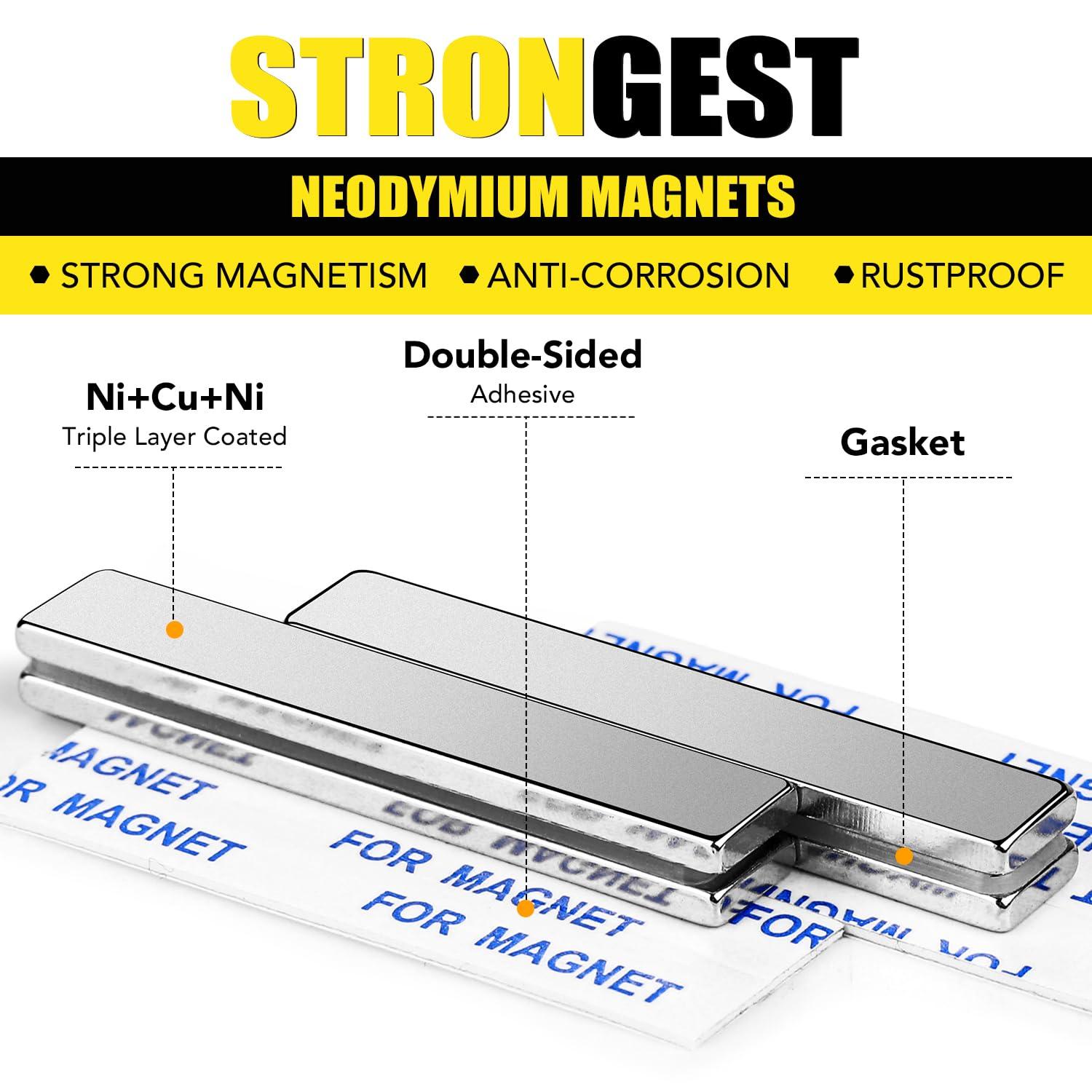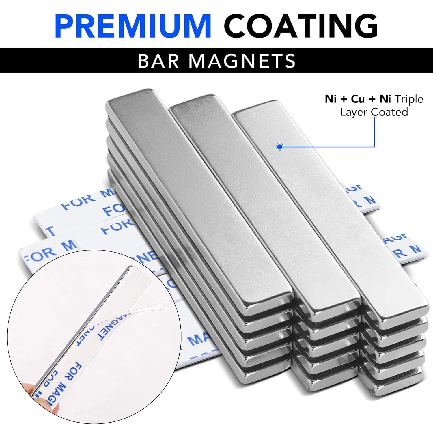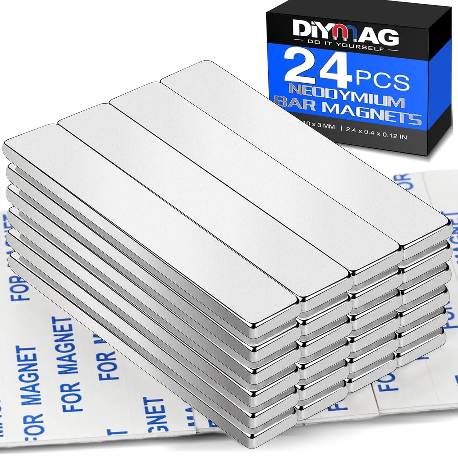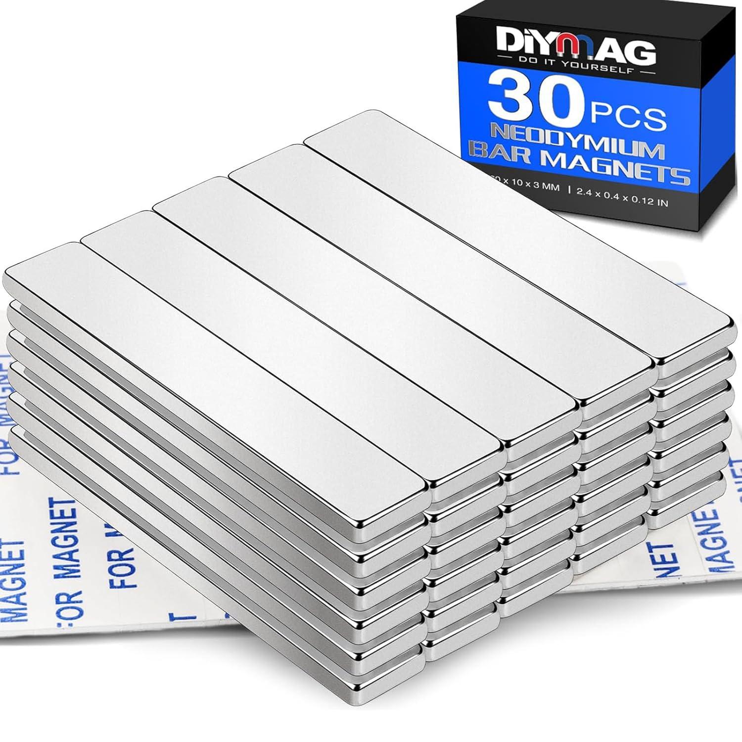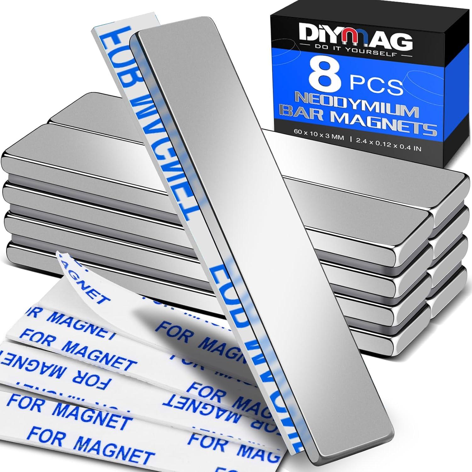 imageDIYMAG Strong Neodymium Bar Magnets Rare Earth Magnets with DoubleSided Adhesive Heavy Duty Magnet Perfect for Kitchen DIY Fridge Garage Science Craft Office60x10x3mm 4 PacksSilver